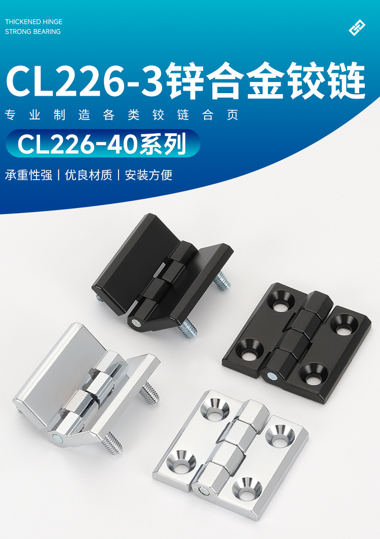 CL218-40亜鉛合金穴あきヒンジ 重量級産業用ヒンジCL226-3A黒色電気キャビネットボックス用スタッド付き
