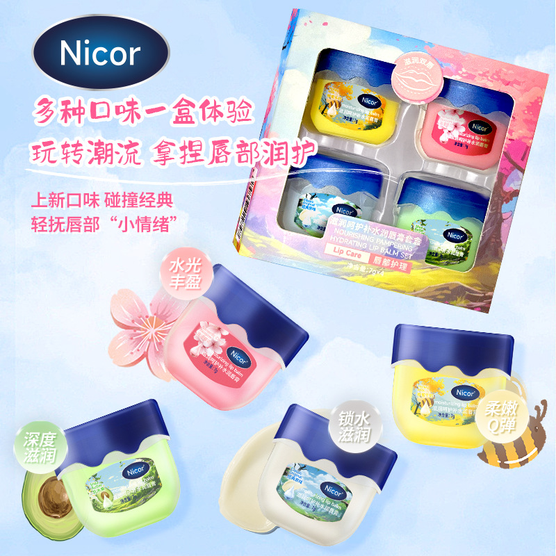 ニコール四色リップクリームセット潤い補修水保湿リップケアセット