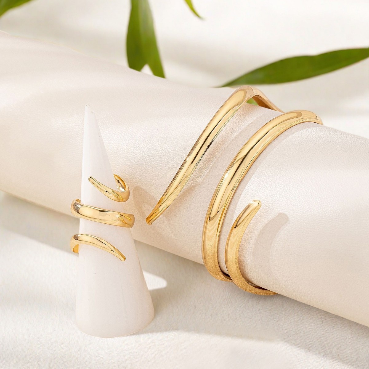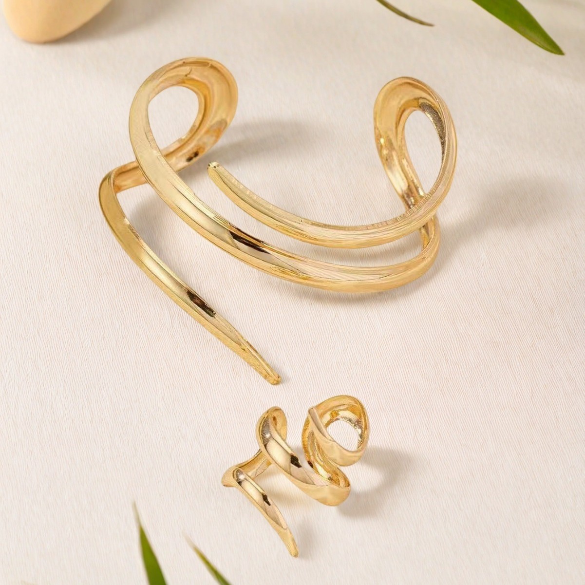 金色の指輪とブレスレットは不規則にレトロでセクシーなスタイルの水波紋の個性をつなぎ合わせて手飾りを誇張している