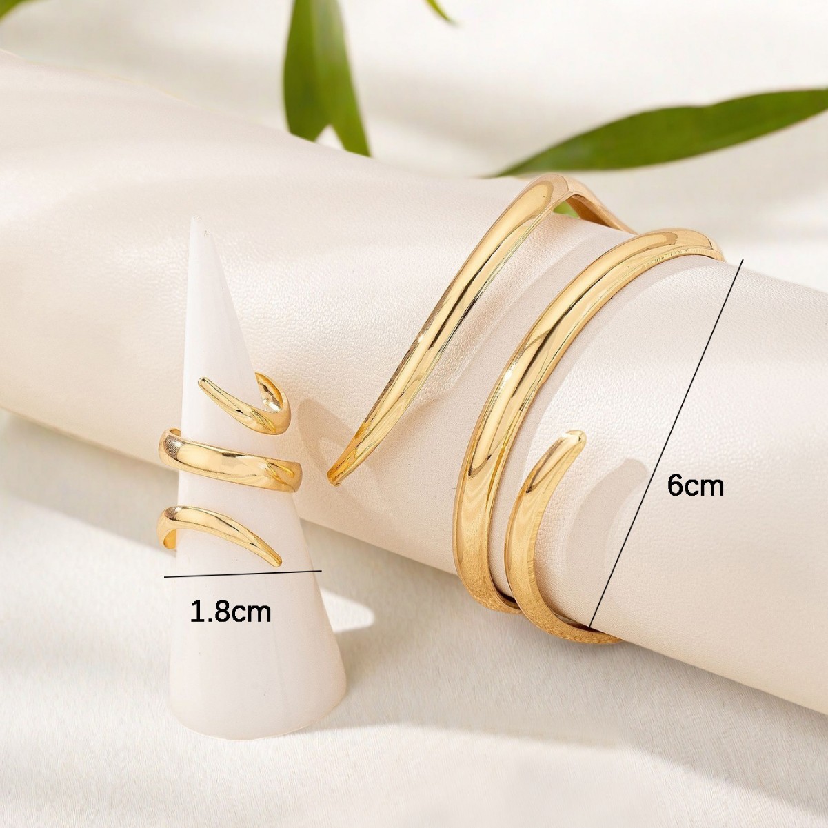 欧米国境を越えたファッションシンプルな線三層スパイラルブレスレット指輪セット女性の個性的な幾何学的アクセサリー