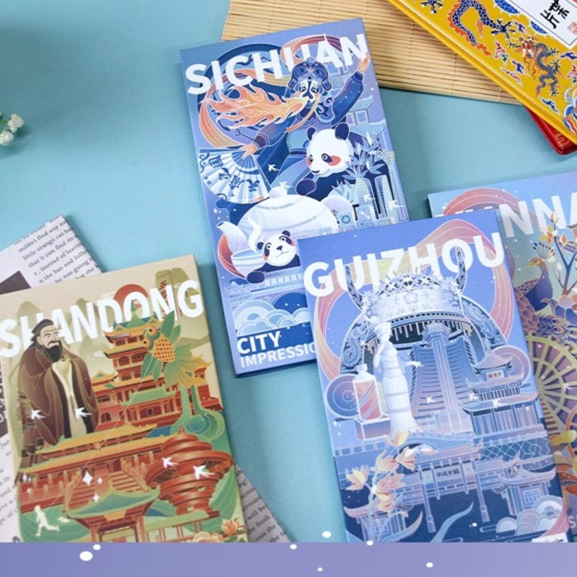 風光明媚な場所のスタンプブック、カスタマイズされた古代の奏章、カスタマイズされたオルガン折りたたみ本、カスタマイズされた書道の古代絵画、カスタマイズされた奏章
