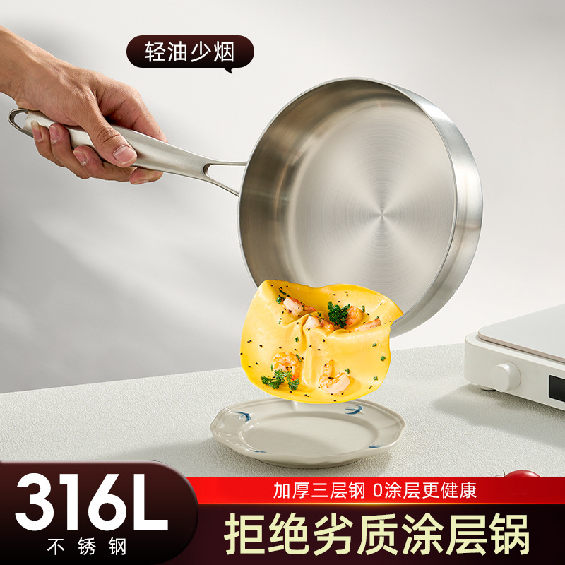 316ステンレスフライパンコーティングなしフライパン家庭用オムレツパンケーキステーキ鍋電磁炉ガスコンロ共通