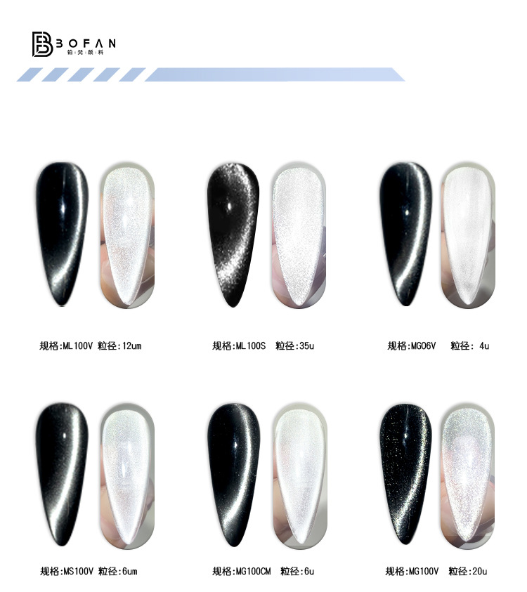 プラチナキャッツアイ磁性粉、グリッター、ガラスビーズ、超微粒子3D磁性粉、キャッツアイ原料、ネイルジェル添加剤メーカー