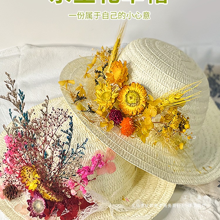 母の日ギフト永遠の花麦わら帽子手作り DIY 材料パッケージ幼稚園親子アクティビティ本物の花装飾花アート