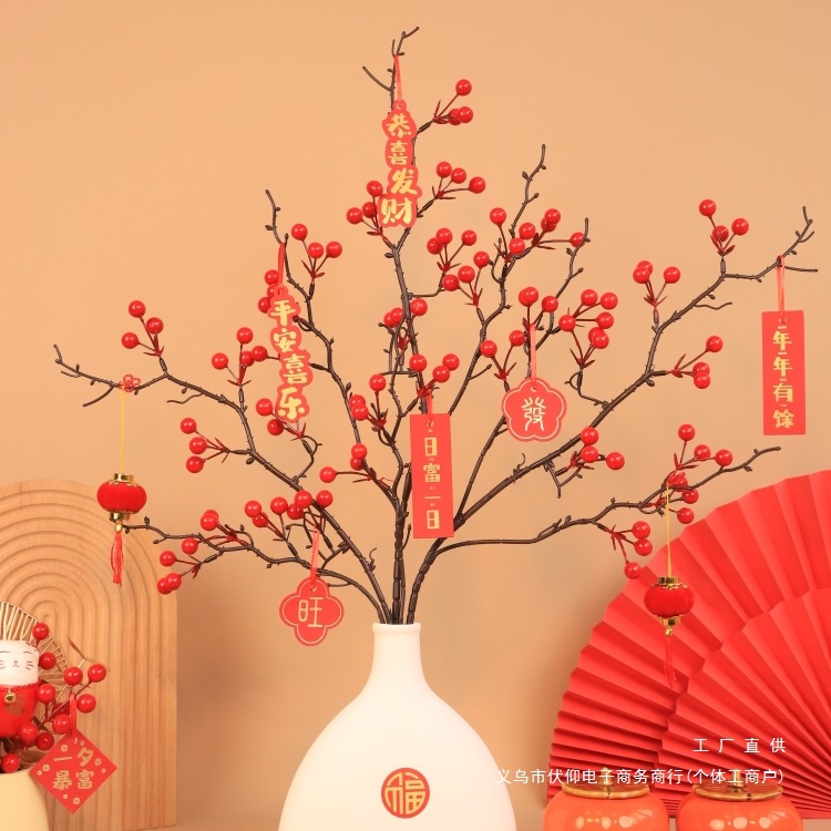 大晦日の花、新年の装飾花、冬の緑の赤い果実、幸運の果実の花、造花、リビングルームの装飾、新築祝いの花束の装飾