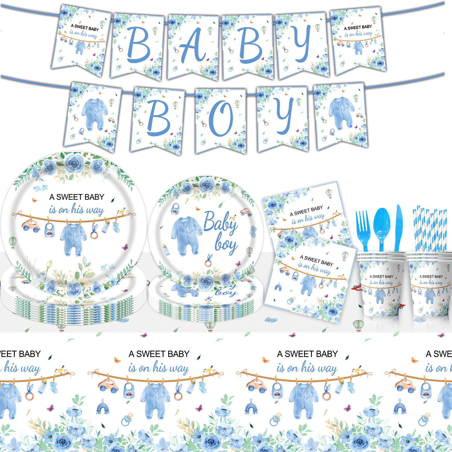 アマゾンの新しい赤ちゃんの男の洗礼のテーマの誕生日パーティーの使い捨ての食器のテーブルクロスのティッシュの紙の皿の装飾品