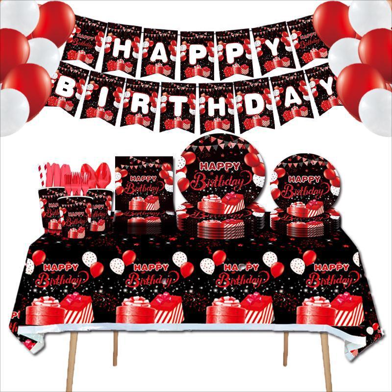 国境を越えたパーティー用品黒赤誕生日使い捨て箔押しパーティー食器ナイフフォークスプーン紙皿紙コップティッシュ配置
