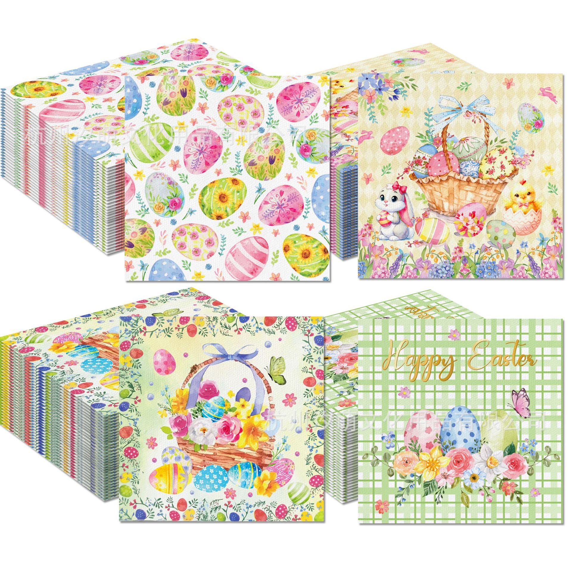 ZJ125 复活节彩蛋方纸巾 节日派对布置餐巾 卡通兔装饰一次性纸巾