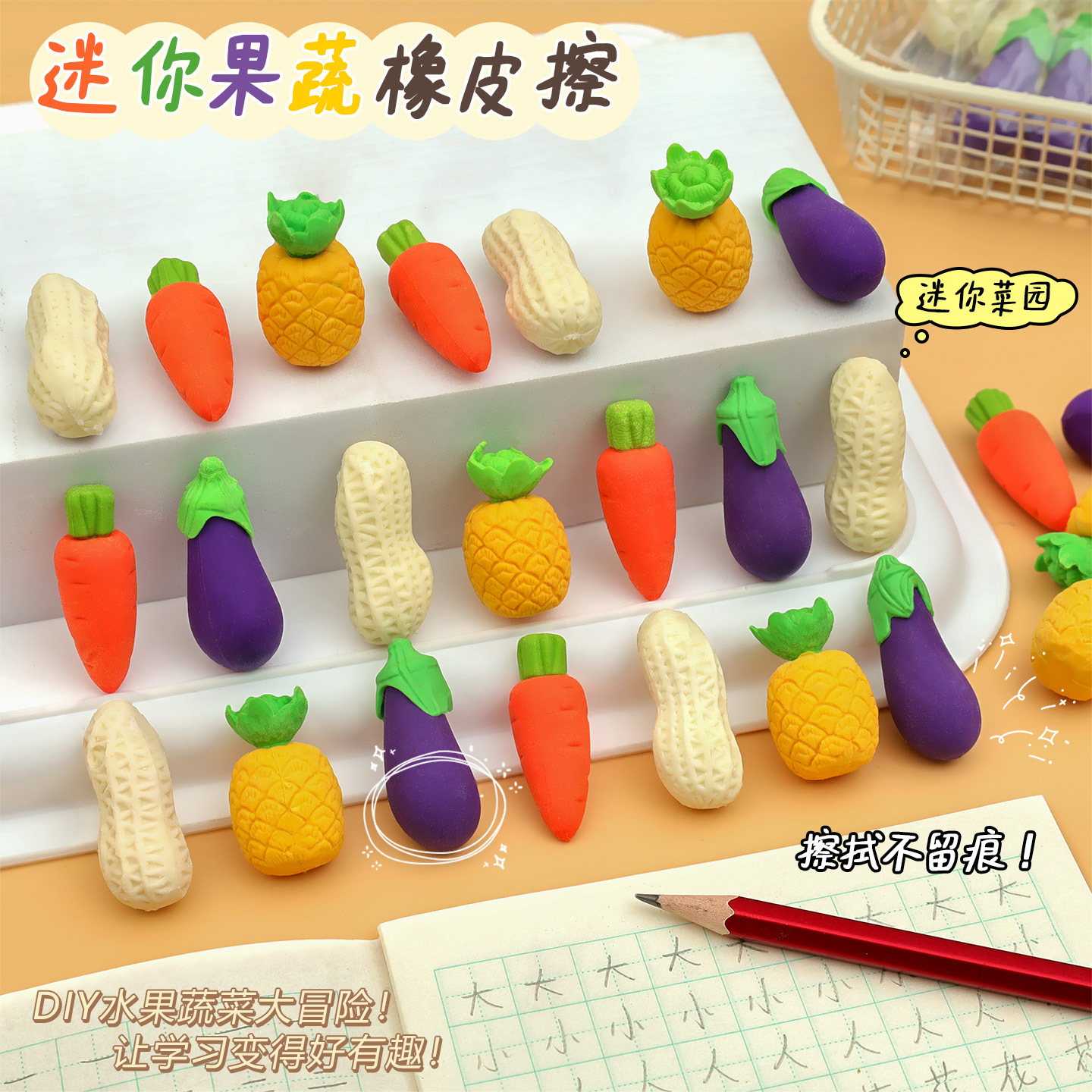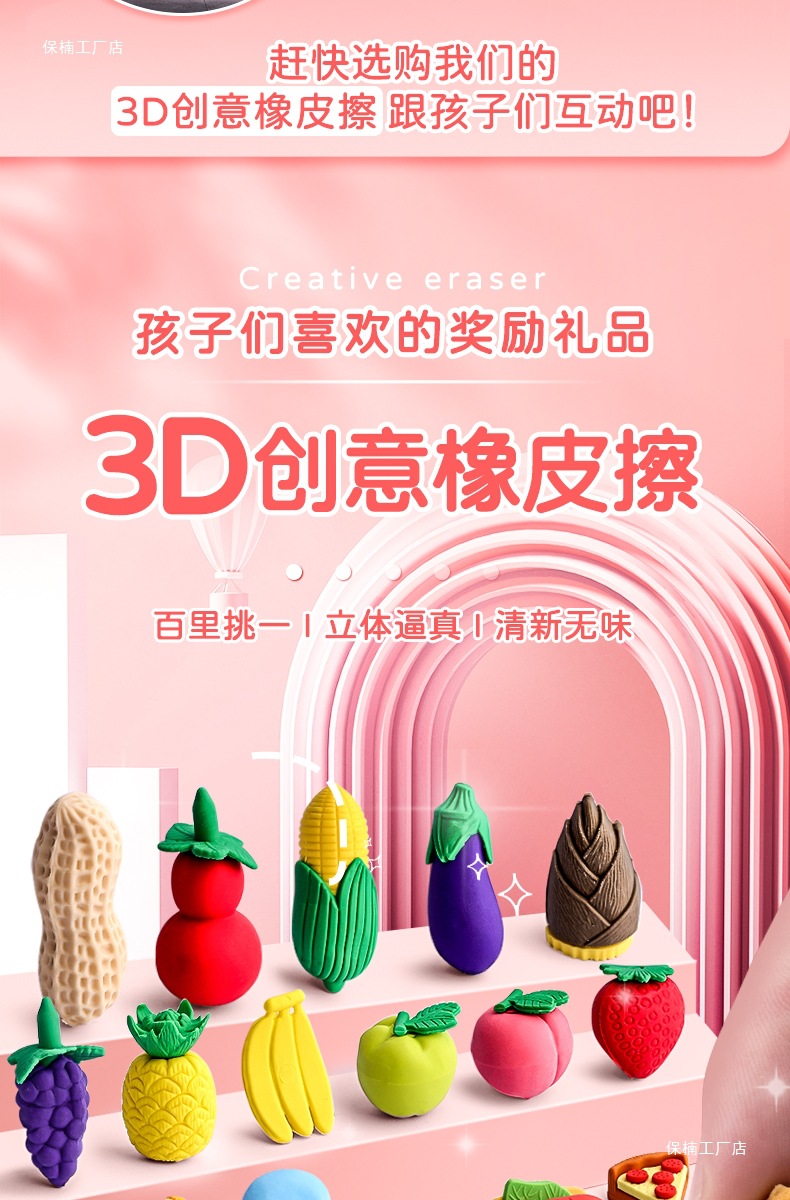 水果蔬菜橡皮擦儿童小学生创意卡通可爱幼儿园文具奖励像笔擦好看