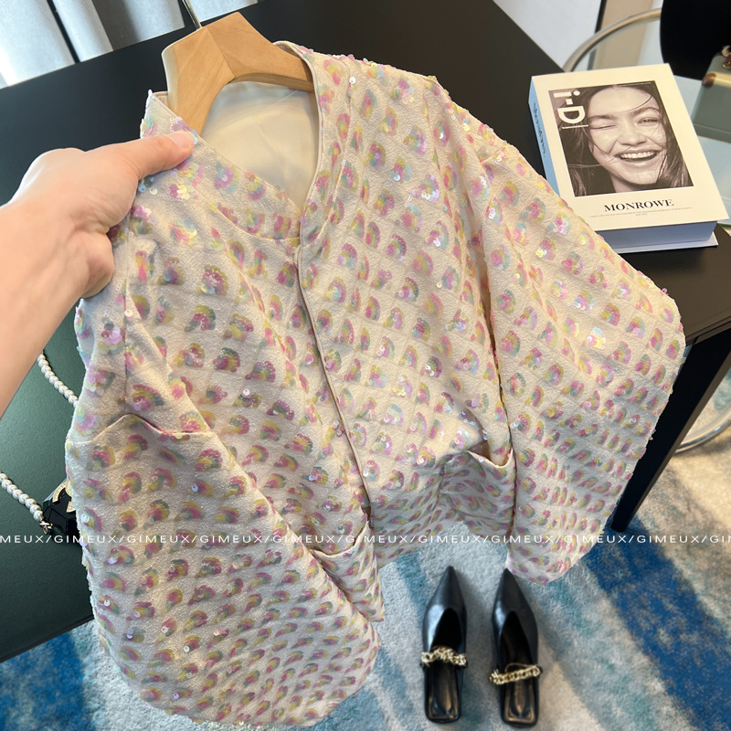 2025 新しいスタイルの小さな香りのよいショートコート女性のための春デザインハイエンド重工業スパンコール気質社交界痩身トップ