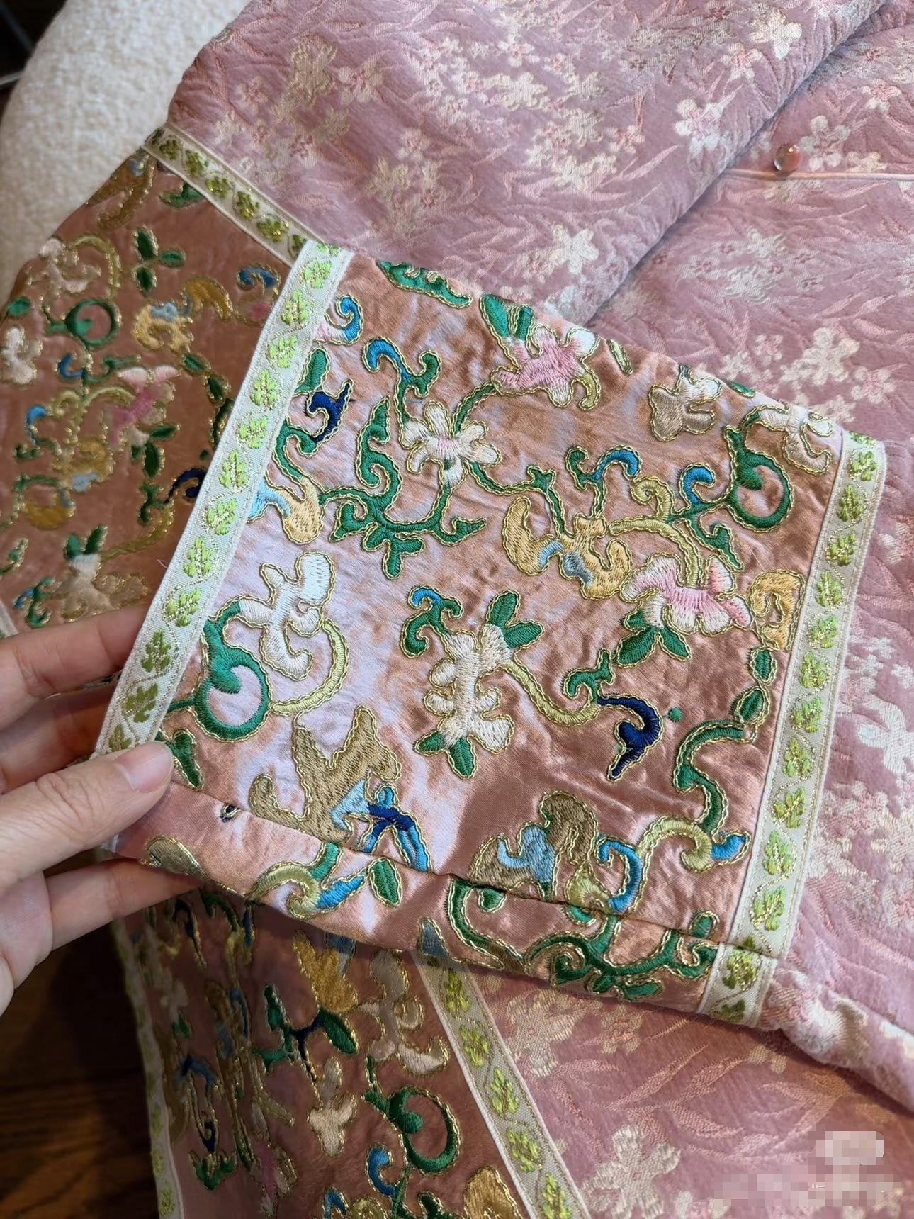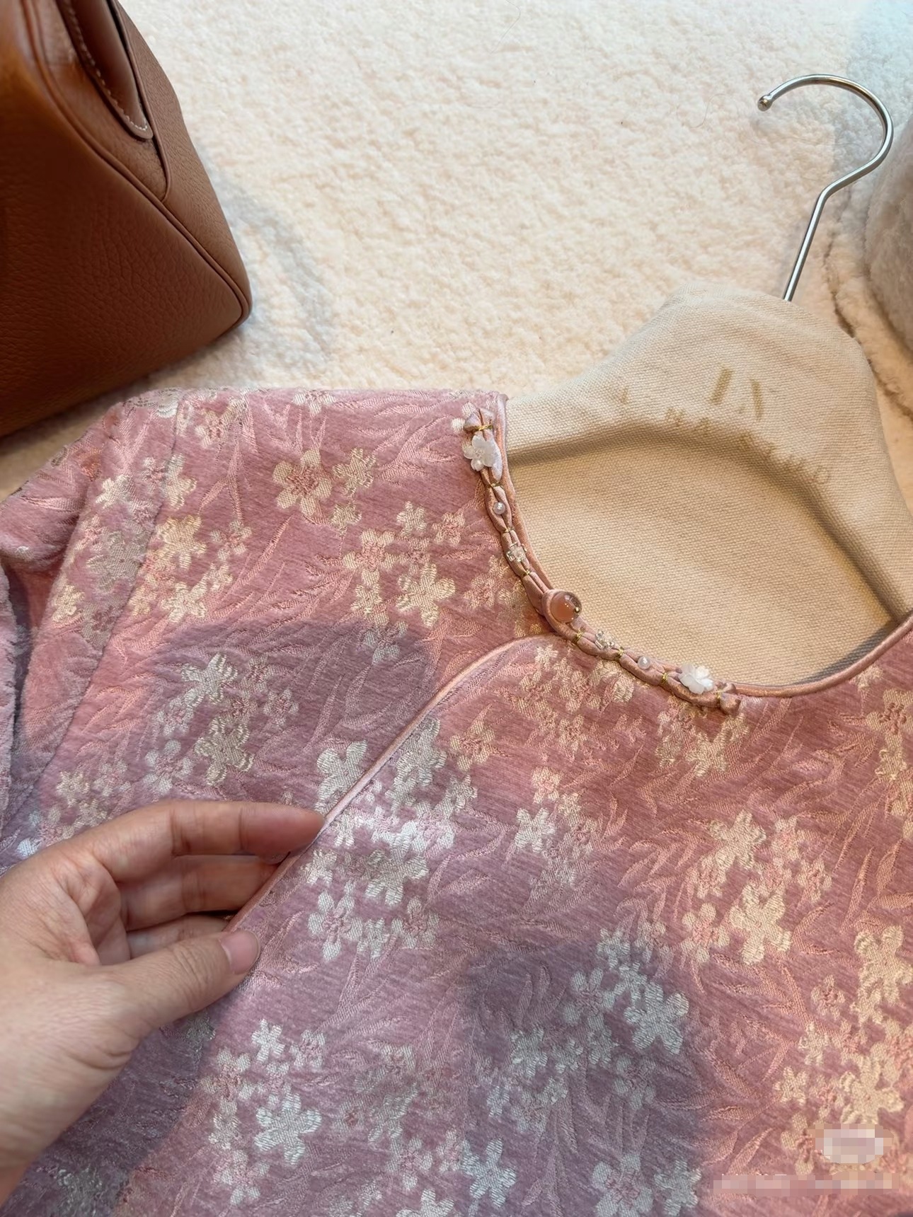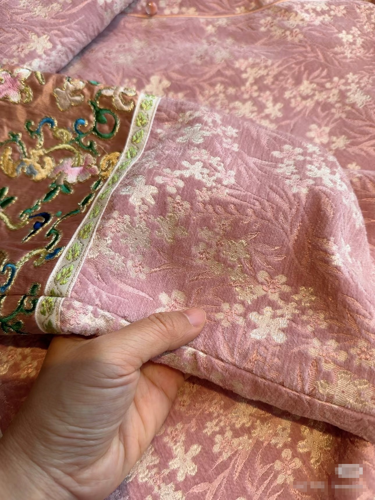 2024冬に今年流行した爆発金は独特で美しい高級感がある新中国風ピンクコート女