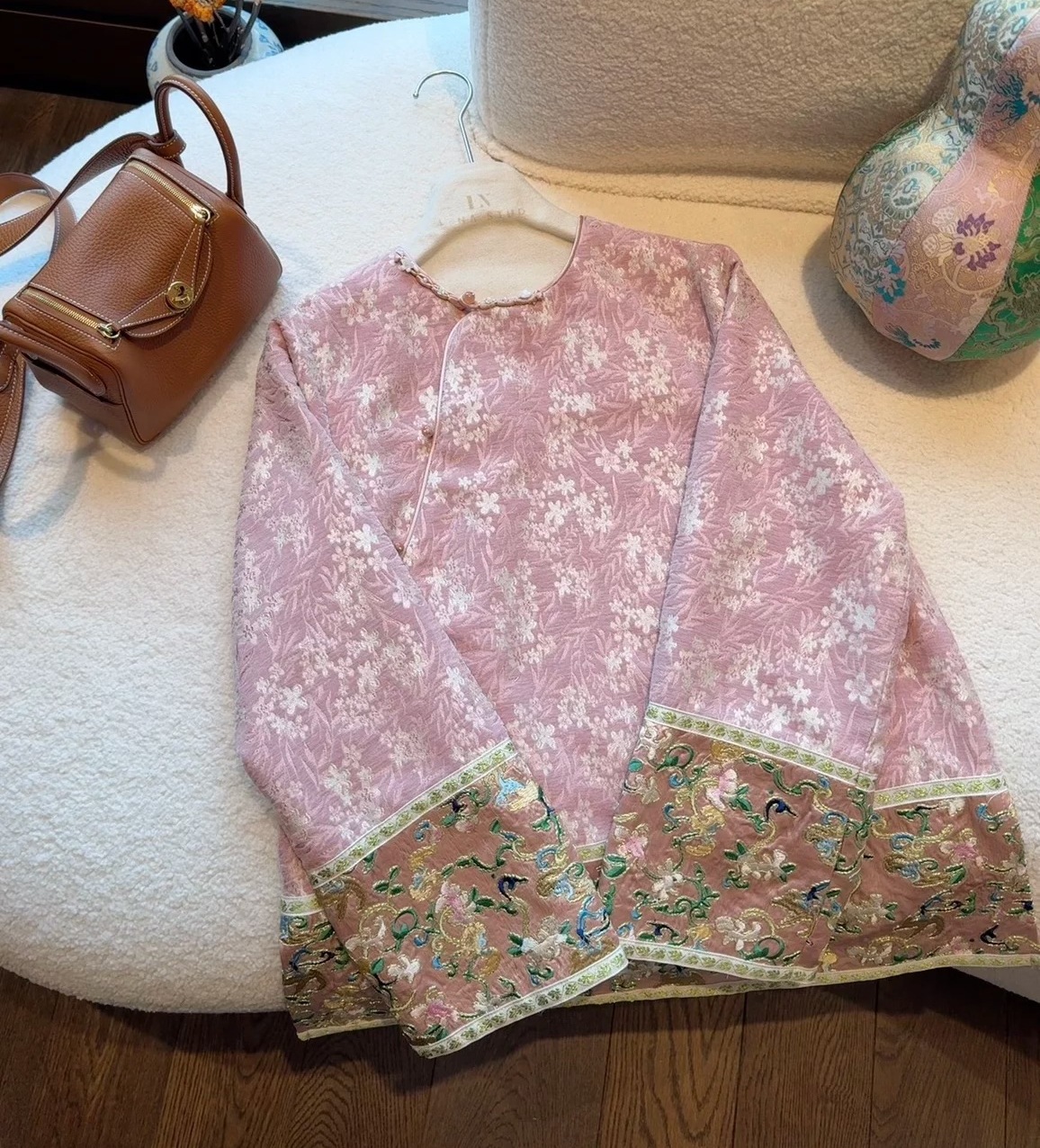 2025 早春の新中国風重工業刺繍優しいガーリースプライシングジャカード斜め前立てトップ