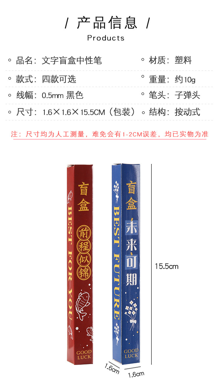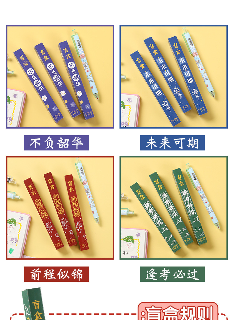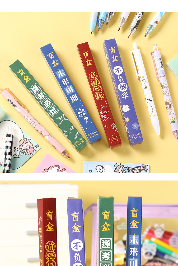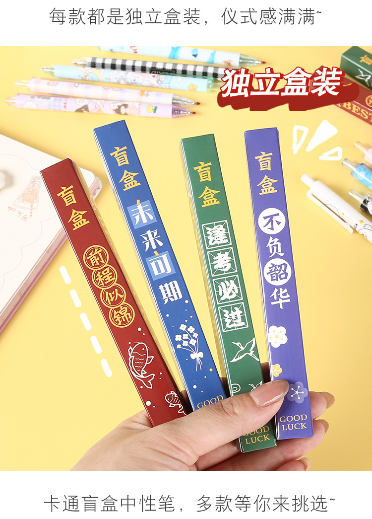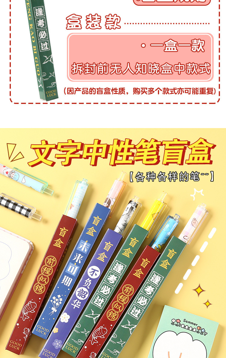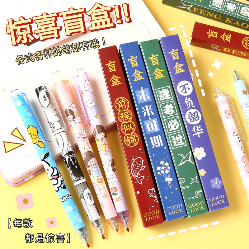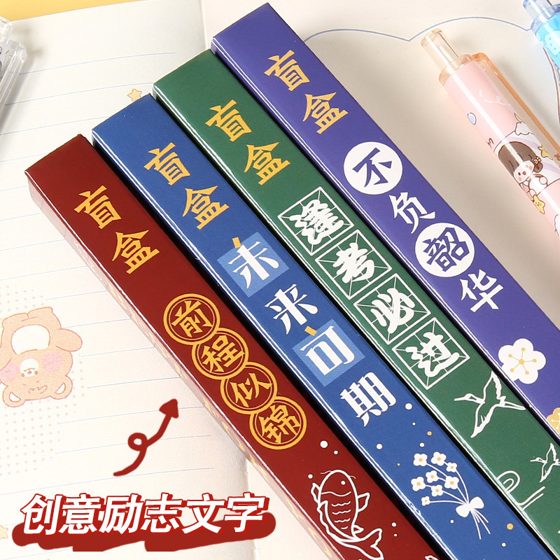 励ましの志の文字のブラインドの箱の中性の筆の学生の入学の文房具のセットの小さいプレゼントのアイデアの幸運な箱のサインペン