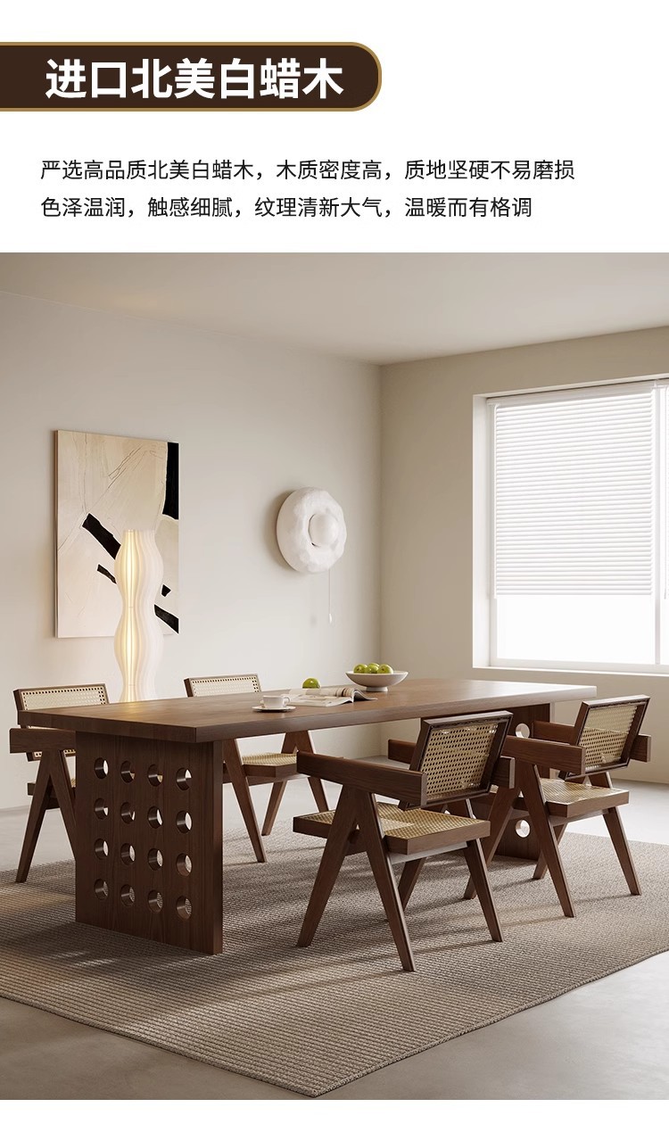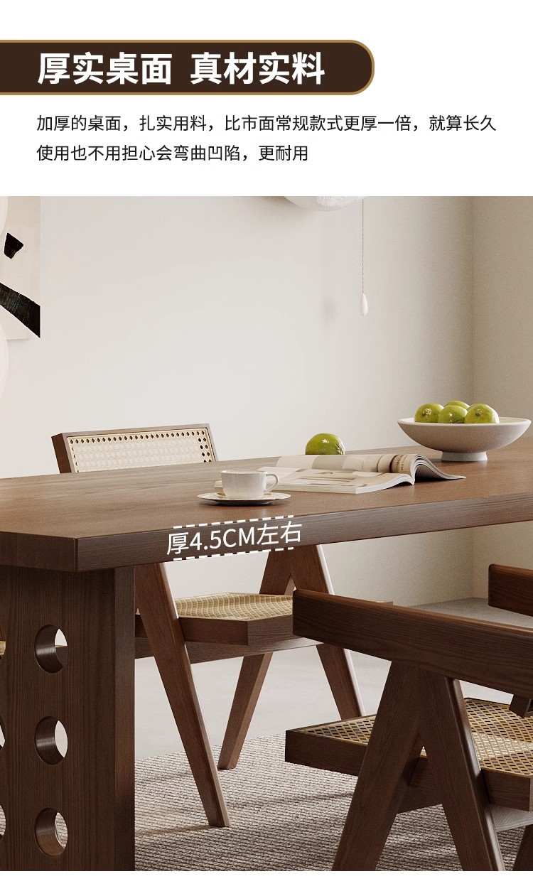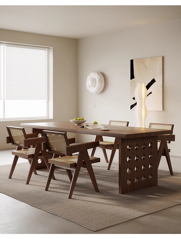 中世スタイルの全無垢材ダイニングテーブル、モダンでシンプルな小さなアパートの長方形のダイニングテーブル、イタリアンライト高級ウォールナットデスク