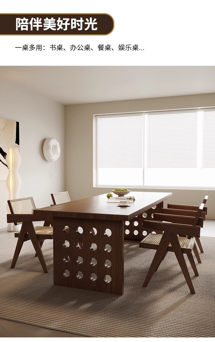 去客厅化实木大长书桌南美胡桃木大板桌工作台学习阅读桌家用现代