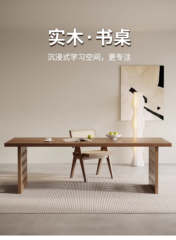 無垢材デスク、リビングルーム、丸太大板テーブル、中世スタイル書斎、家庭用書道テーブル、ホールボードロングデスク
