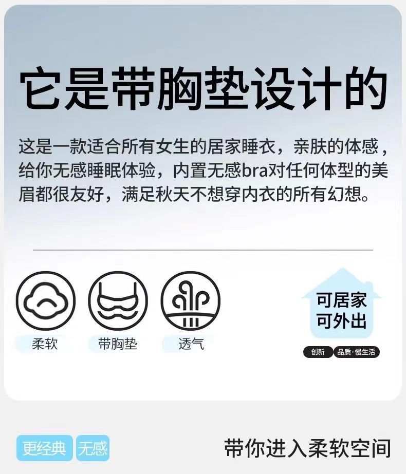パジャマの女性春秋タイプの純綿長袖2024新型胸パッド付き高級感のある家庭服セット