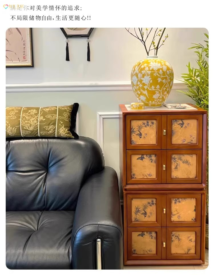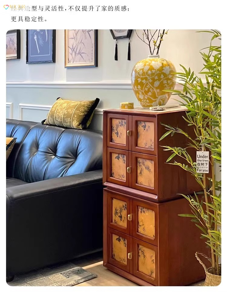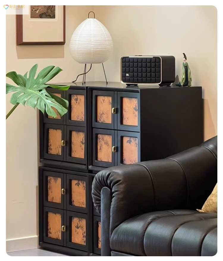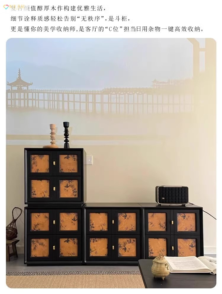 实木香云纱中古斗柜模块组合柜客厅卡门柜新中式电视柜床头柜组合