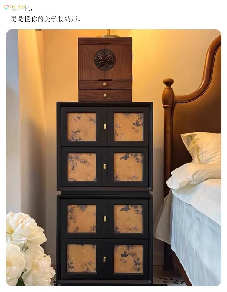 香云纱斗柜模块组合柜实木卡门柜新中式电视柜中古风复古床头柜厂