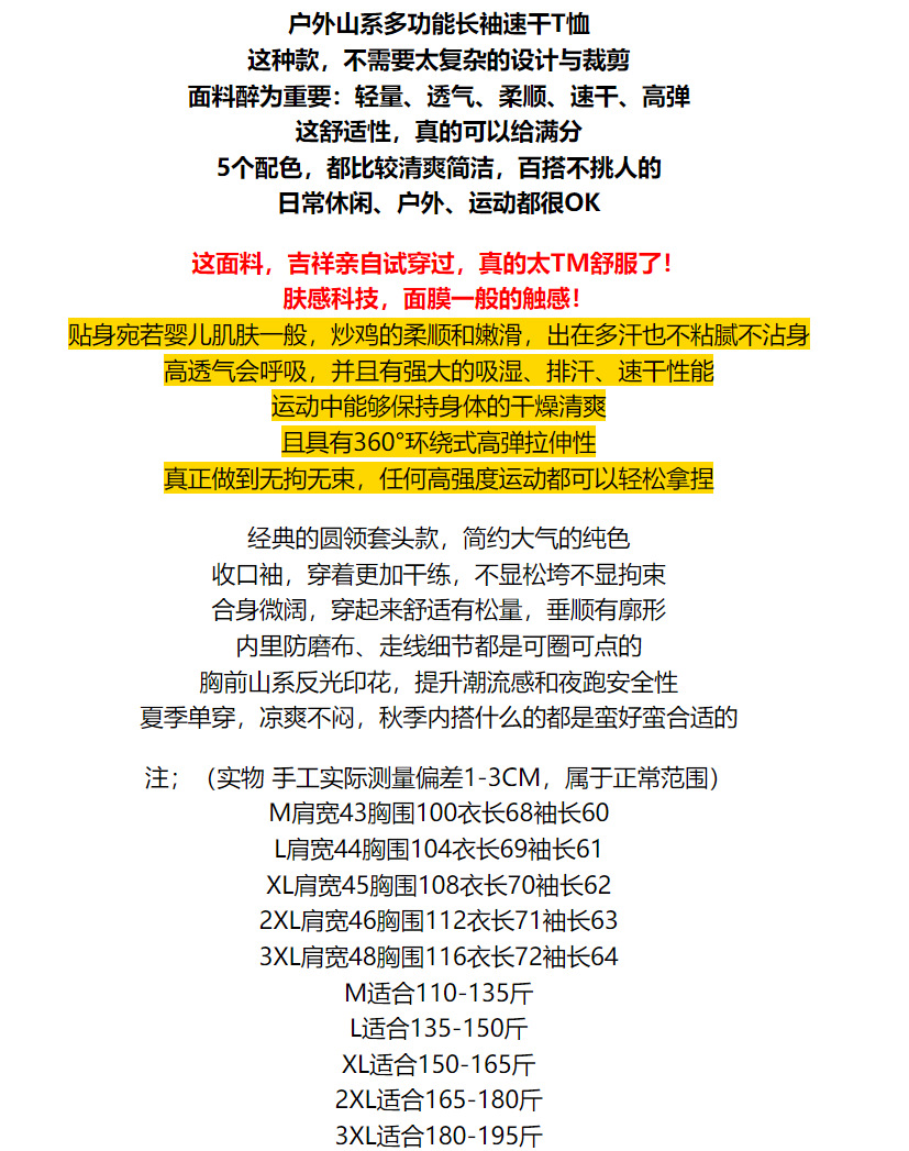 アウトドアハイエンド! 軽量速乾高弾秋の新型男性レジャー運動騎行服日焼け止め長袖スウェット