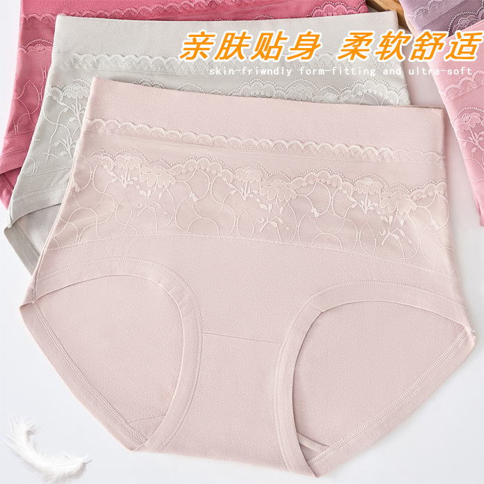 纯棉高腰蕾丝花边收腹内裤舒适透气高弹不勒不夹PP不卡档女士内裤
