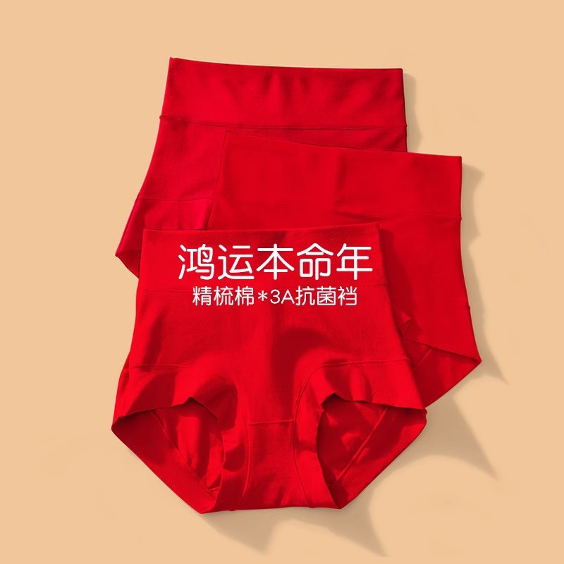 本命年高腰大赤色女性下着龍年喜慶大サイズのお尻を上げて腹を収めます。