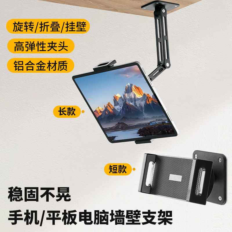携帯電話とタブレットの両用壁掛けブラケットアルミニウム合金壁固定携帯電話ブラケット折りたたみ式回転カンチレバーブラケット