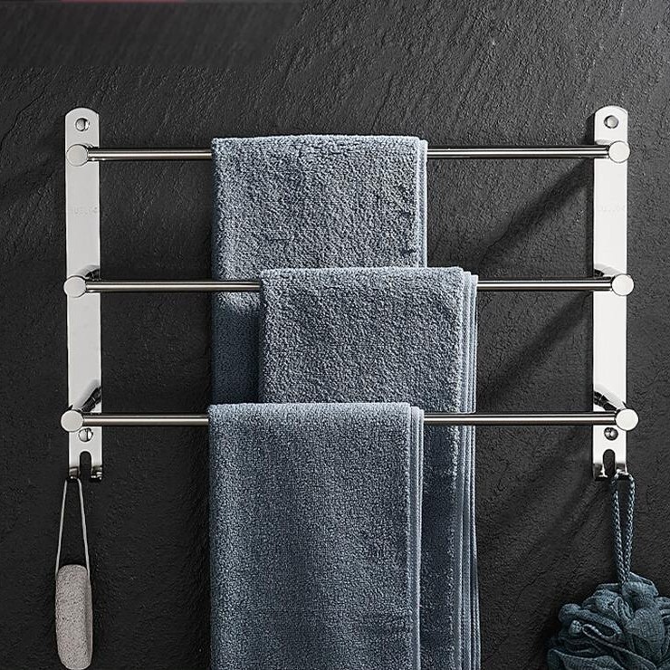 304 ステンレス鋼のバスルームタオルバー三層バスタオルラックハンガータオルバー壁掛けシングルポール多層タオルラック