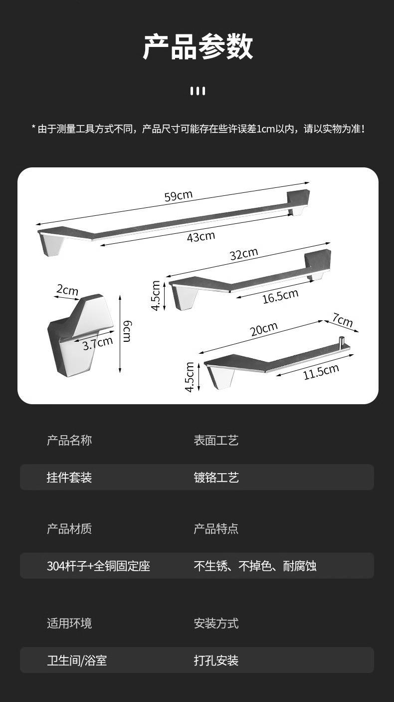 タオル掛け304ステンレス製バスタオル掛けトイレ浴室収納ラック壁掛け式バスルームアクセサリーセット穴あけ不要