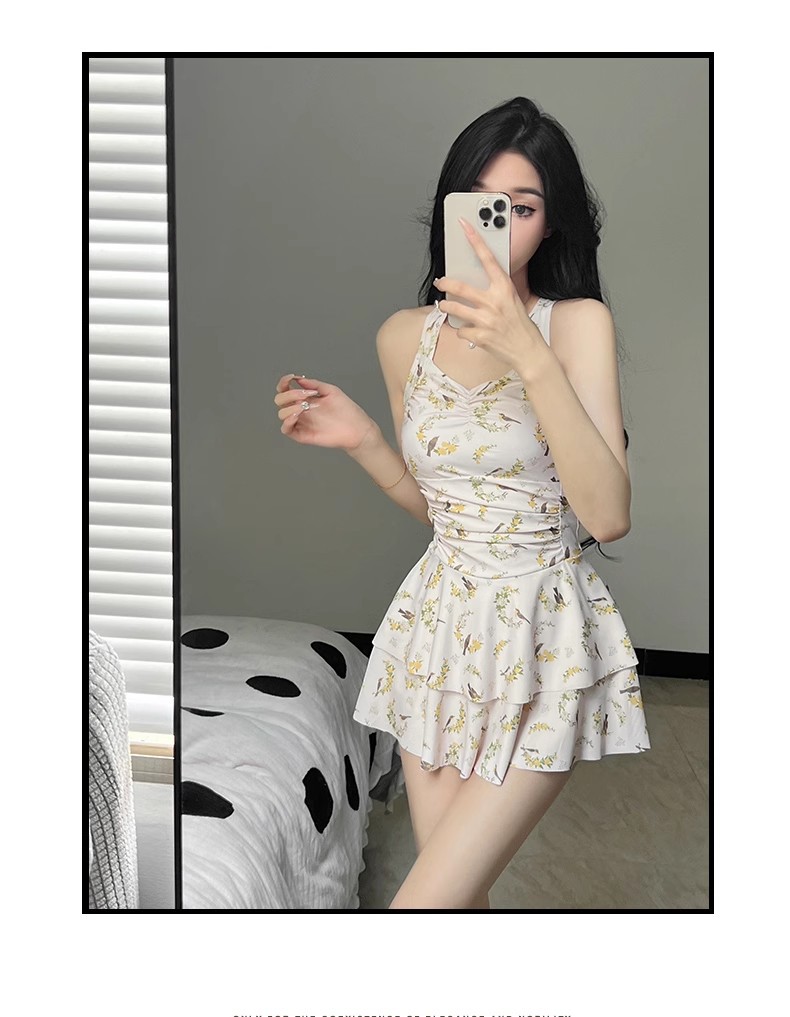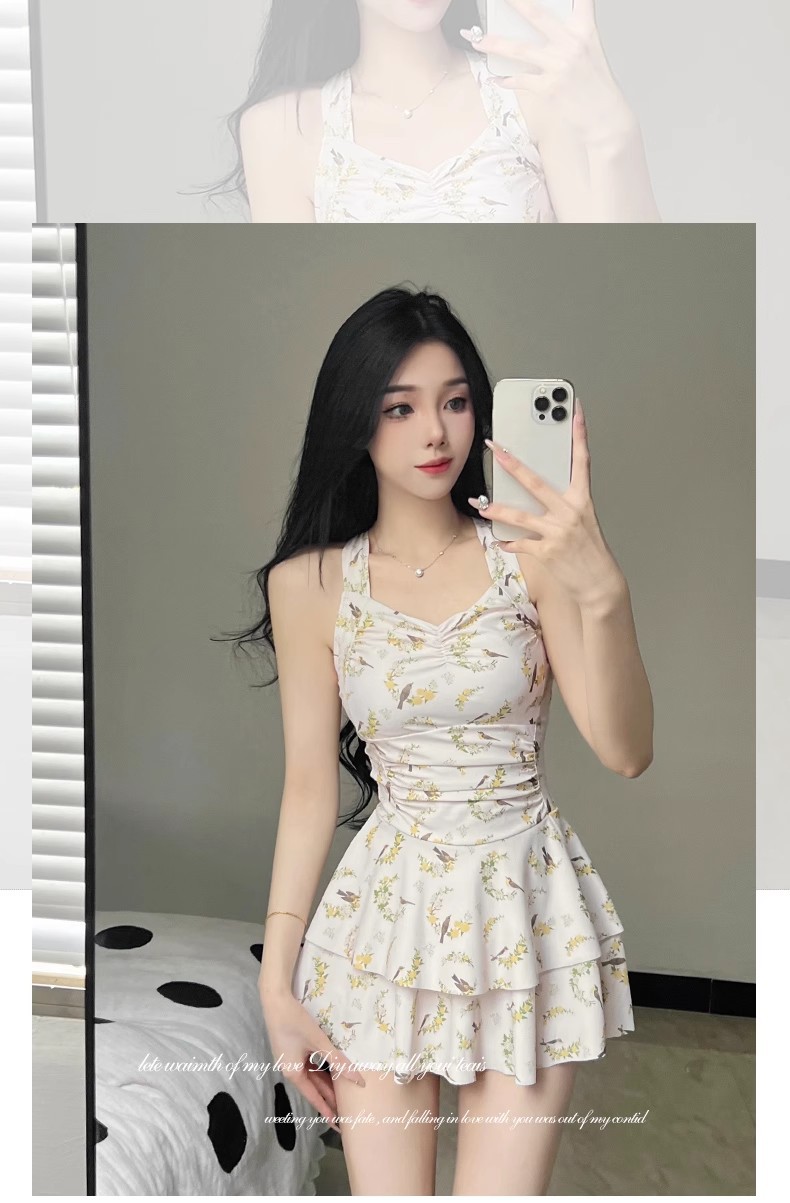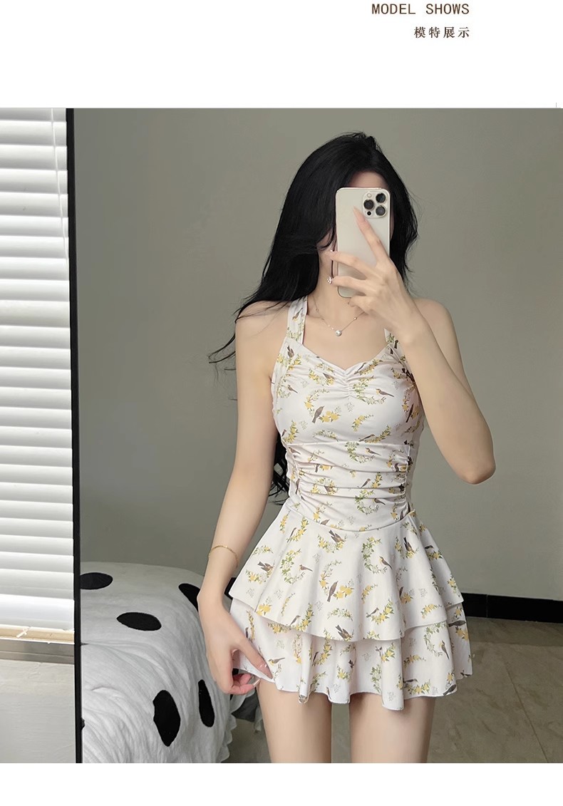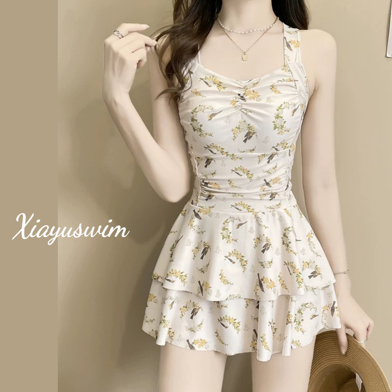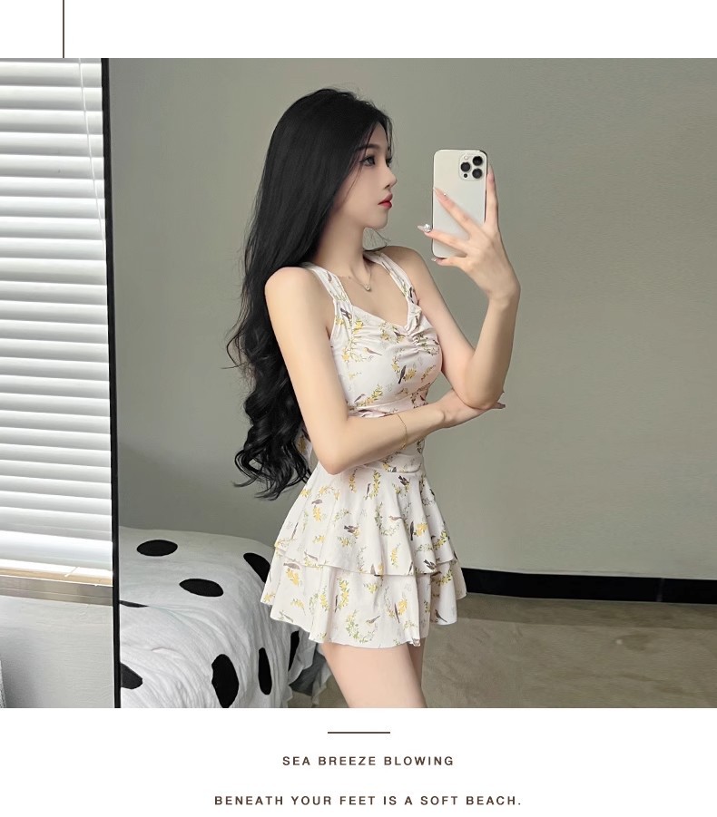 ワンピース式水着女性2025新型保守的にお腹を隠して痩せている学生の休暇水着学生は甘美で白く見える