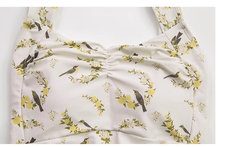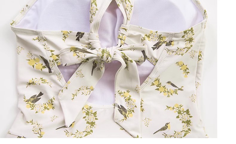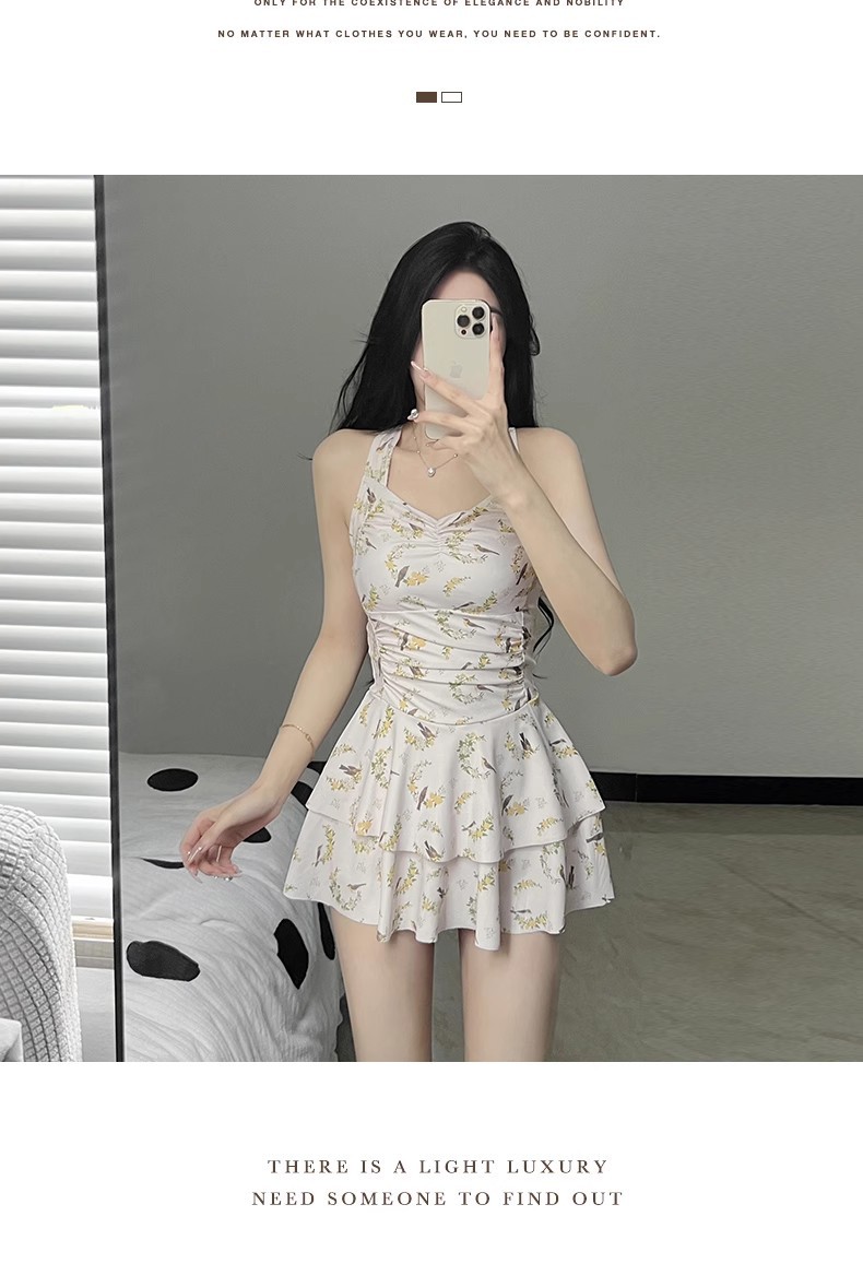 ワンピース水着レディースレトロフレンチプリント着痩せマスク平角パンツ温泉水着高级感インスタ风