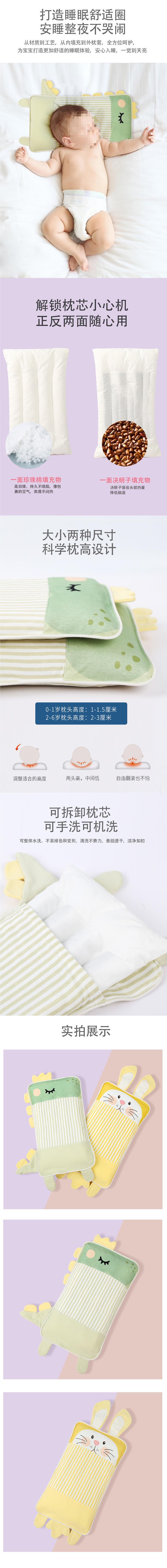 四季ベビー枕専用7子供枕赤ちゃん12子供月6歳以上3幼稚園グリーン恐竜