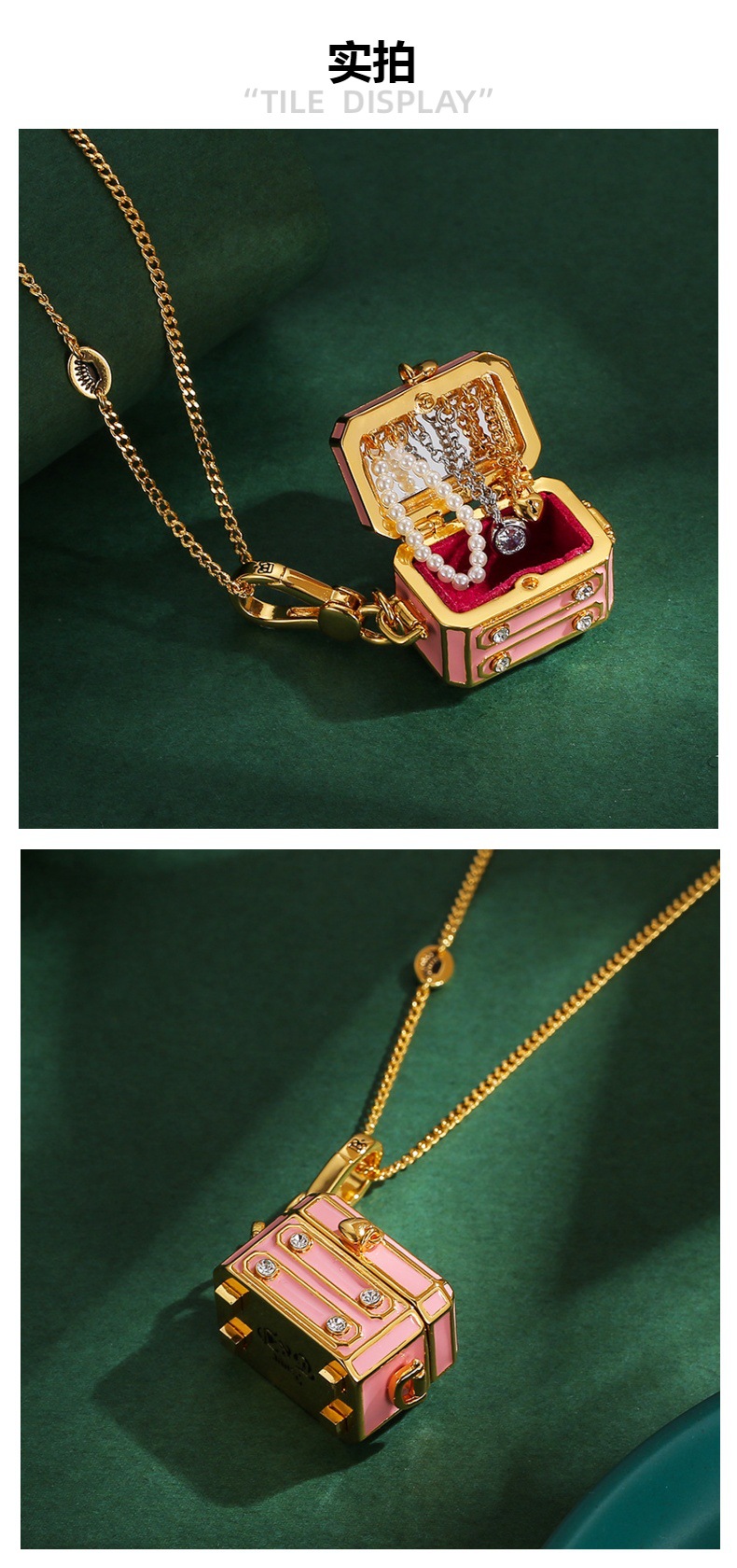 高级感おしゃれエナメル彩釉薬パールクリスタル宝石可オープンミラージュエリーボックスペンダントネックレスペンダントペンダント