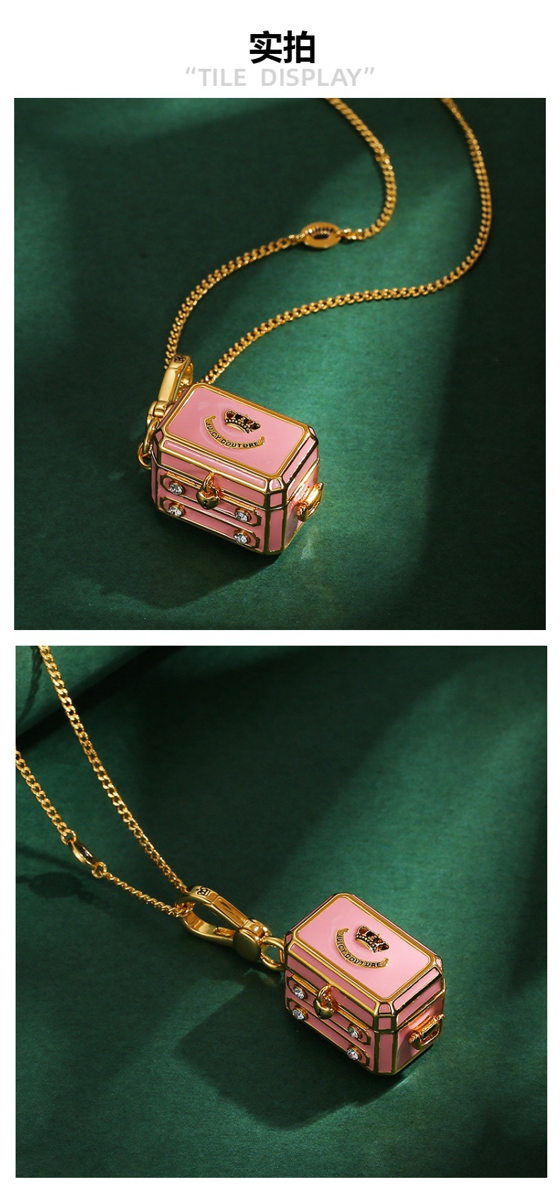 立体精致珐琅彩釉镶锆挂坠蝴蝶结字母印花手提包吊坠设计感项链潮