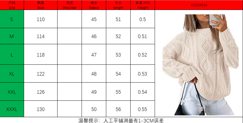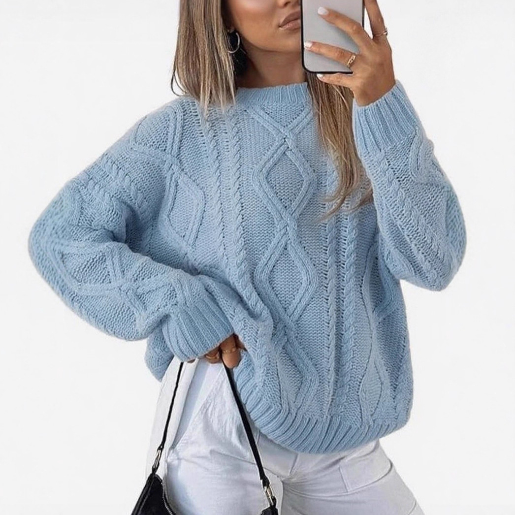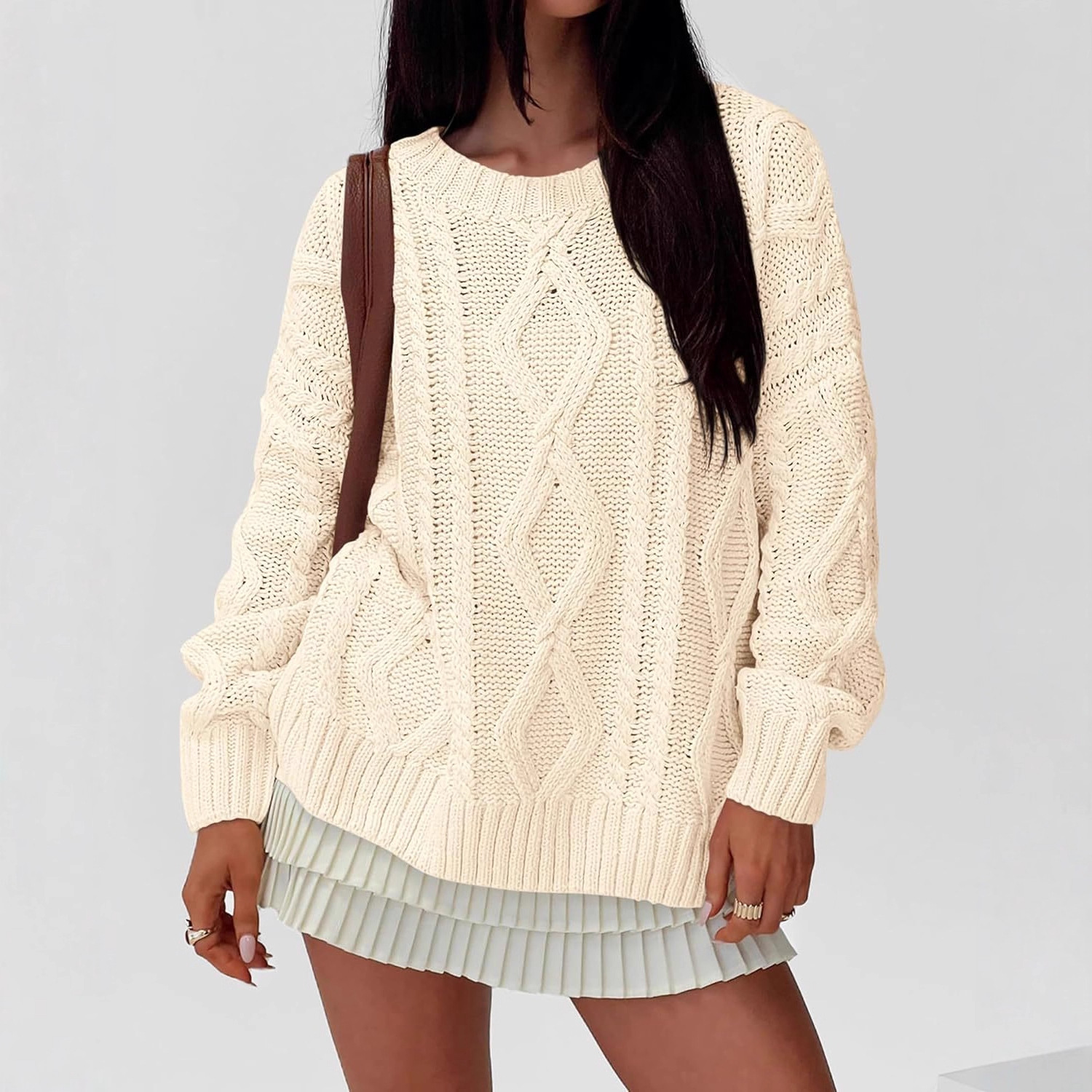 2025跨境亚马逊独立站欧美女式超大绞花针织圆领秋冬麻花毛衣爆款