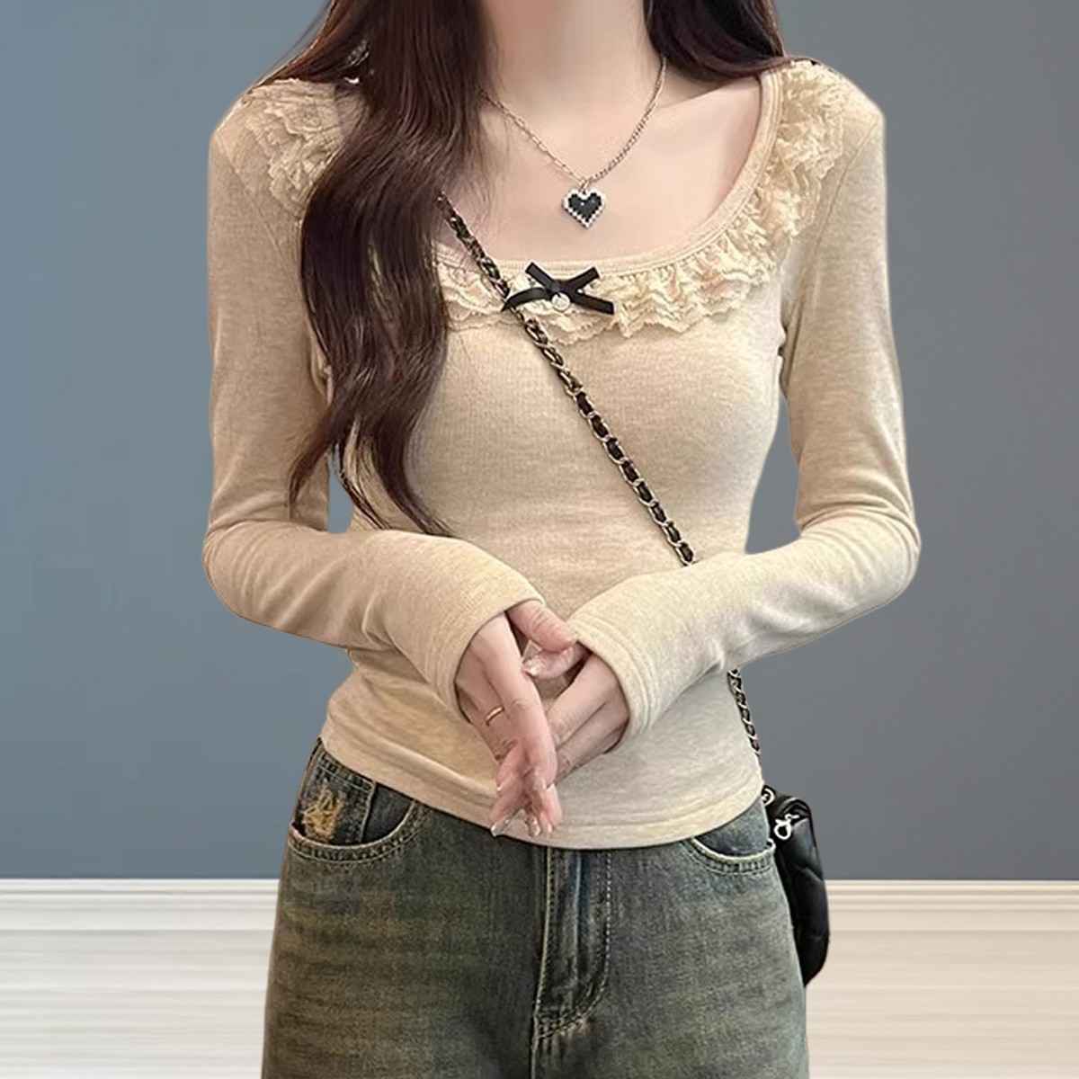 メーカーは好評価率が高い95% ポリエステル繊維5% 綿ナイロン秋のシャツtシャツ女性レースを提供している