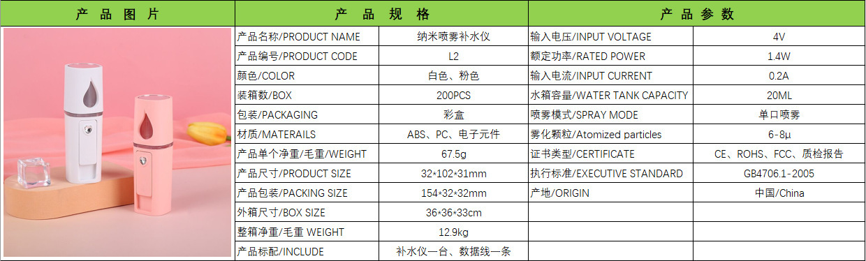 L2 かわいいペットナノスプレー水分補給器具ハンドヘルド顔加湿器ポータブル家庭用蒸し顔器具美顔器