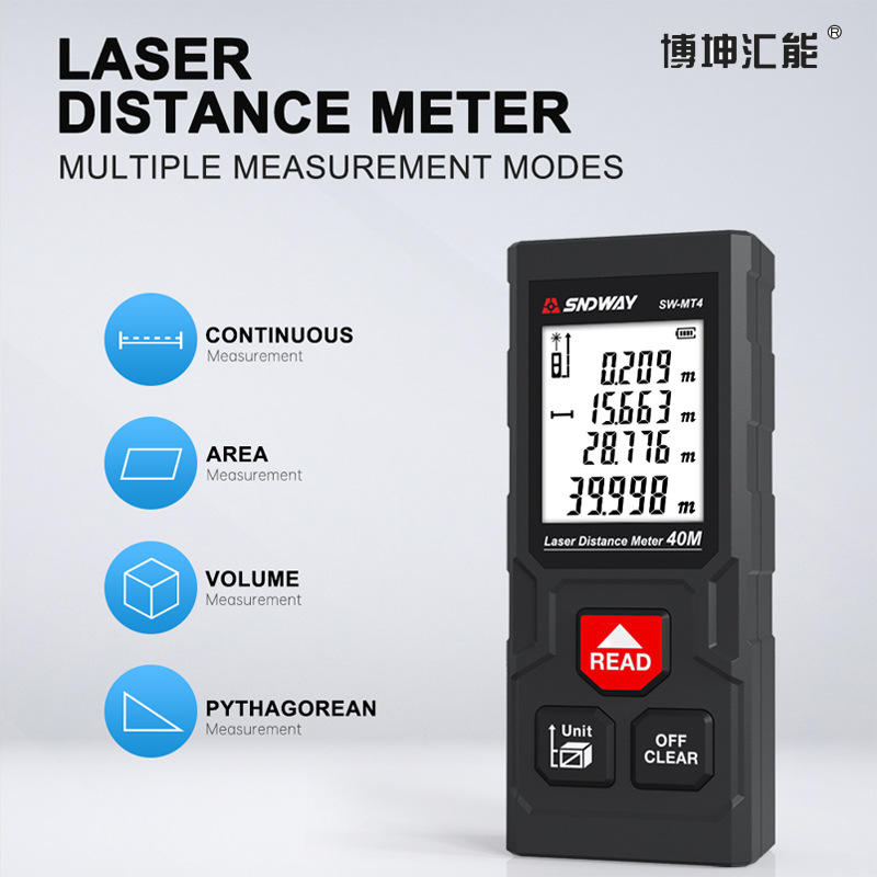 850mAH内置锂电池,语音播报,电子角度,测角测高,面积,体积,勾股定理测量,2.2高清大屏,99笔存储