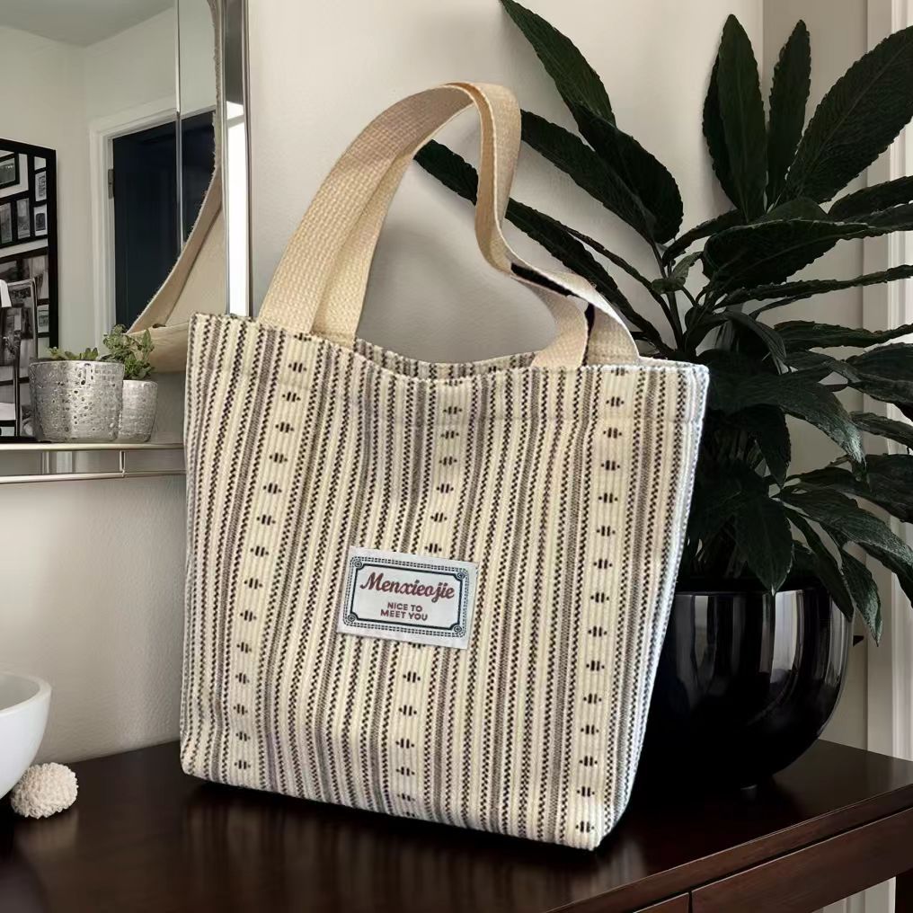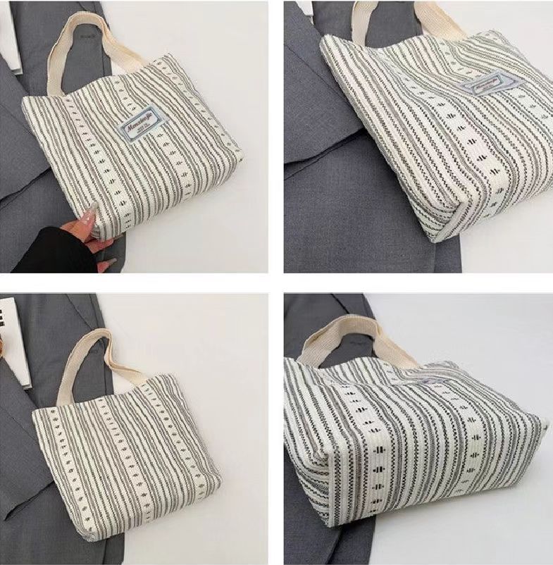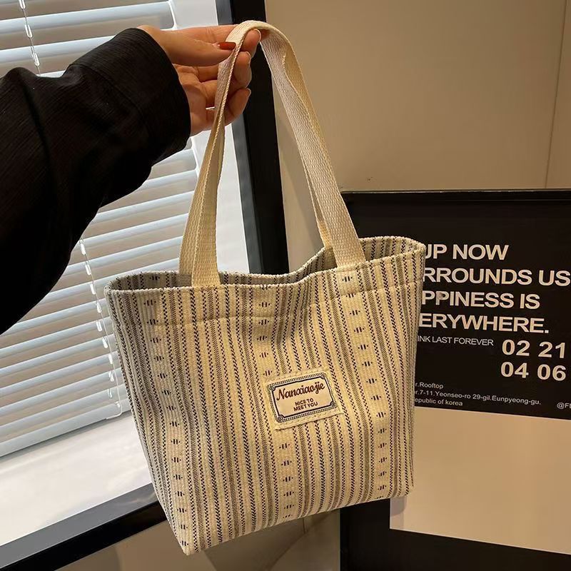 外国貿易日本式布包灯芯絨毛包ins大容量ファッション百合縞手提げ授業シンプル通勤