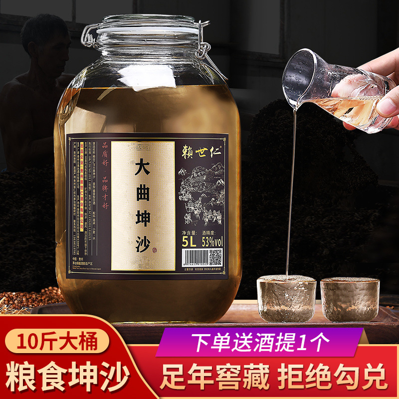 頼世仁貴州味噌香型53度白酒食糧坤沙老酒コウリャンばら積白酒10斤ガラス桶装