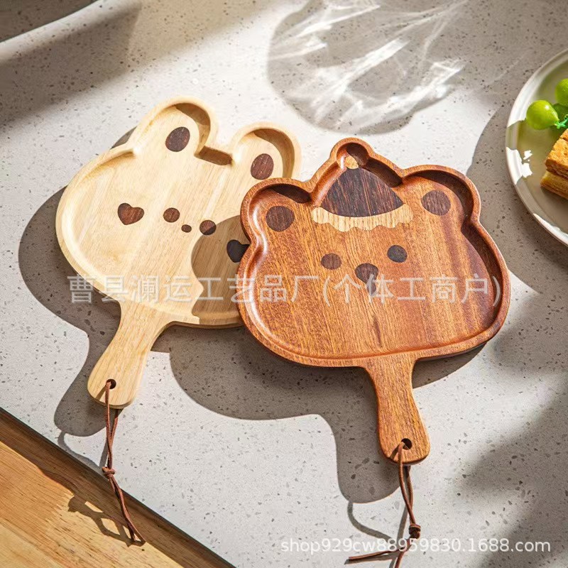 シンプルな漫画木製トレイハンドルクマとウサギ子供用ディナープレートホームスナックフルーツ木製トレイアフタヌーンティートレイ