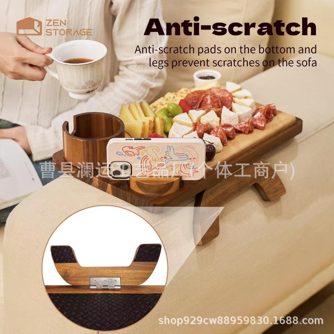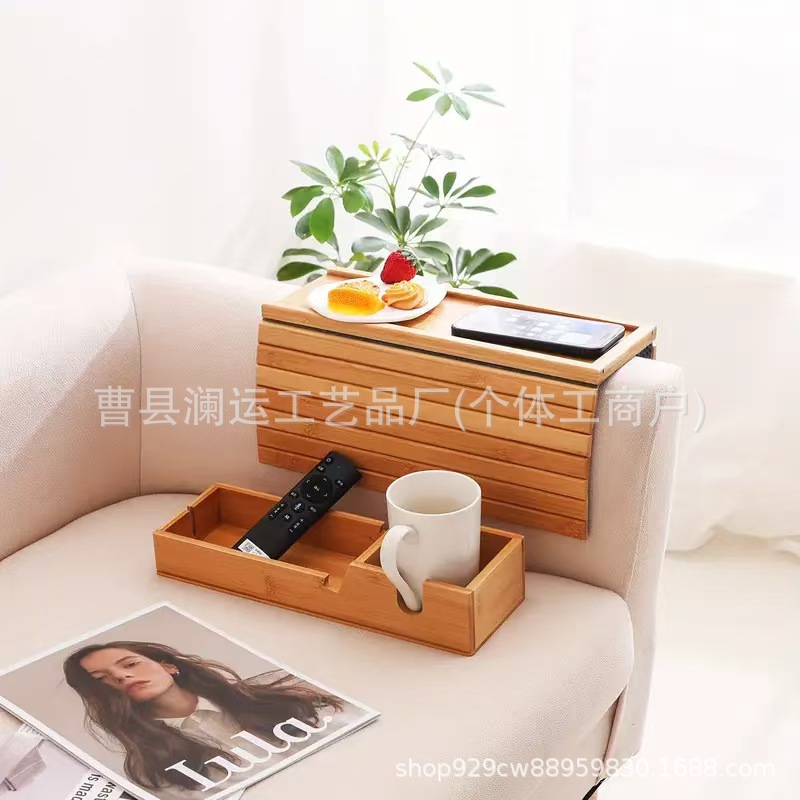 竹ソファアームレストトレイ折りたたみフルーツスナックディナープレートリビングルームソファサイド無垢材スナック収納ラック