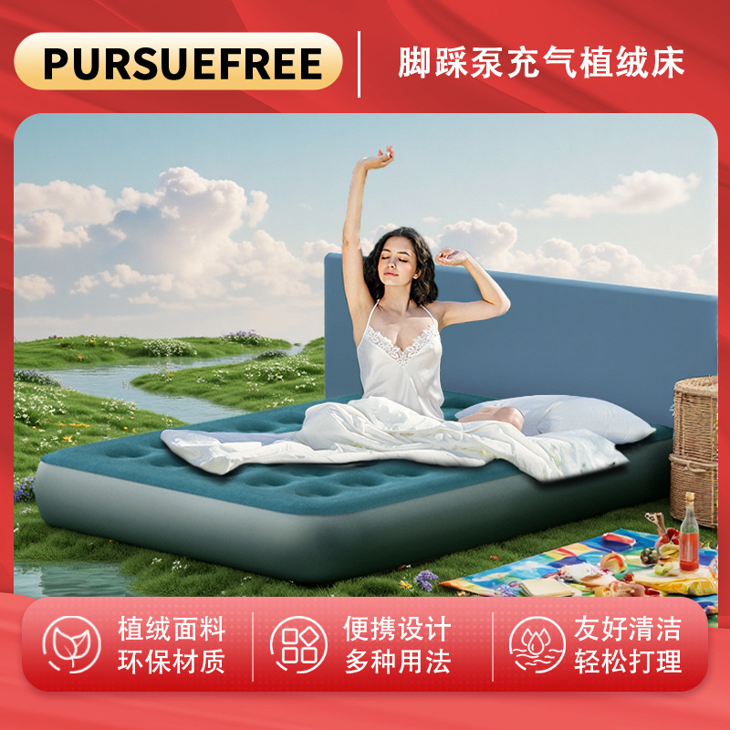 Pursuefree フットペダルシングルトラベルインフレータブルマットレスダブルホーム屋外キャンプテント折りたたみインフレータブルベッド