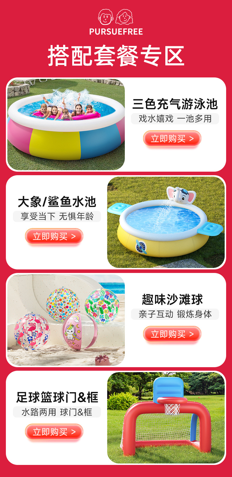 Pursuefree多功能游戏水池充气家用室外喷水娱乐加厚加大动物泳池