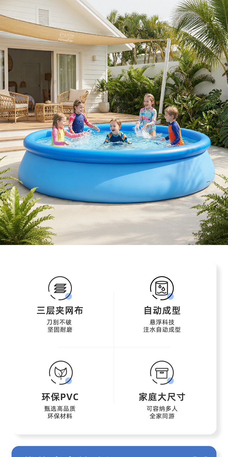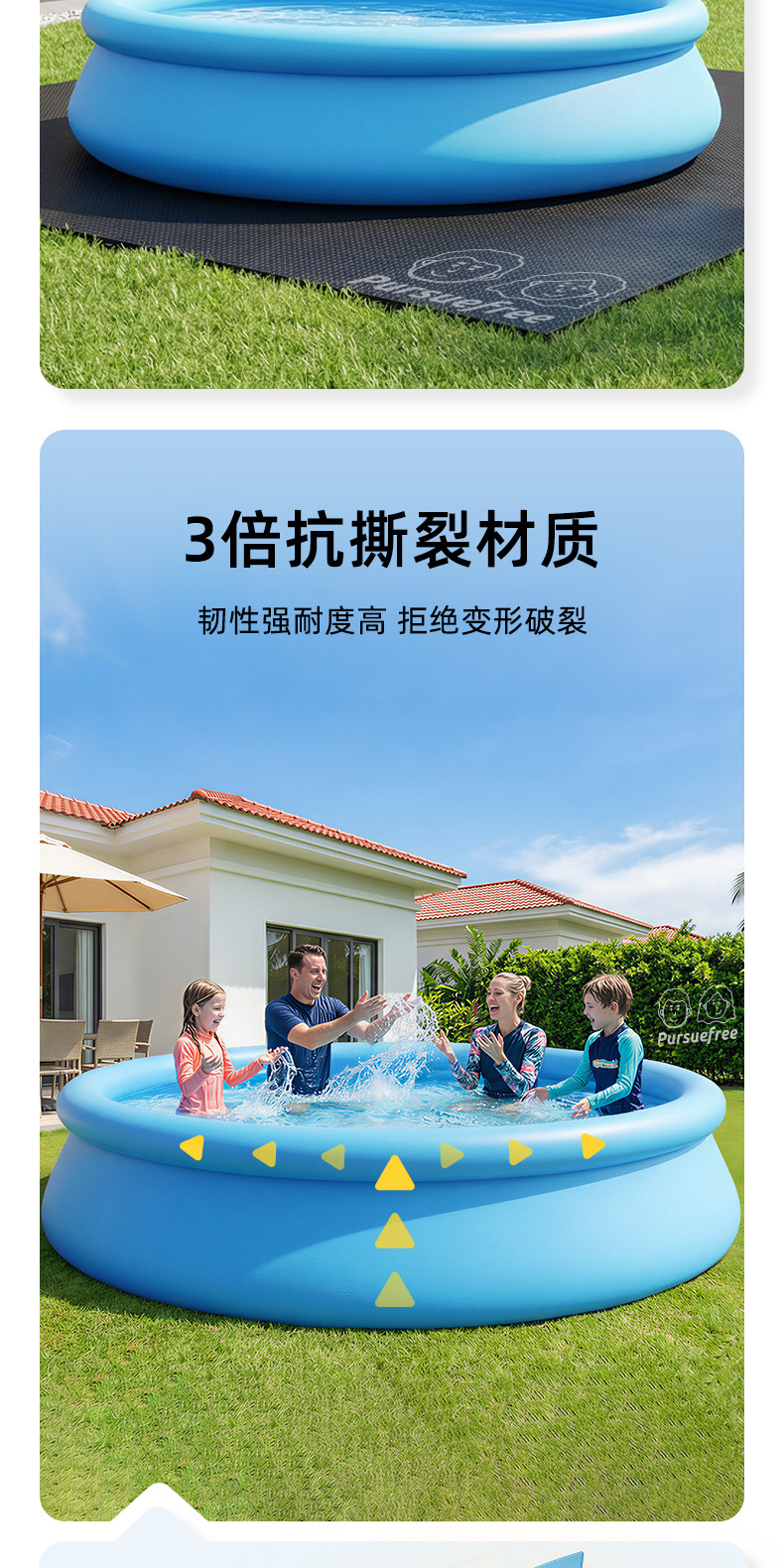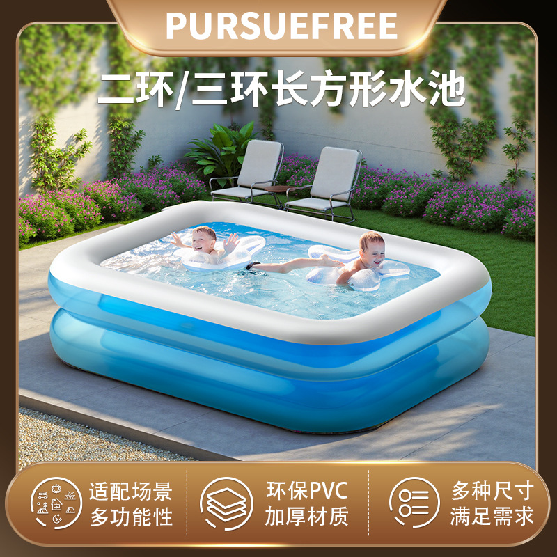 Pursuefree双层三层充气长方形水池家用户外大型充气游泳池