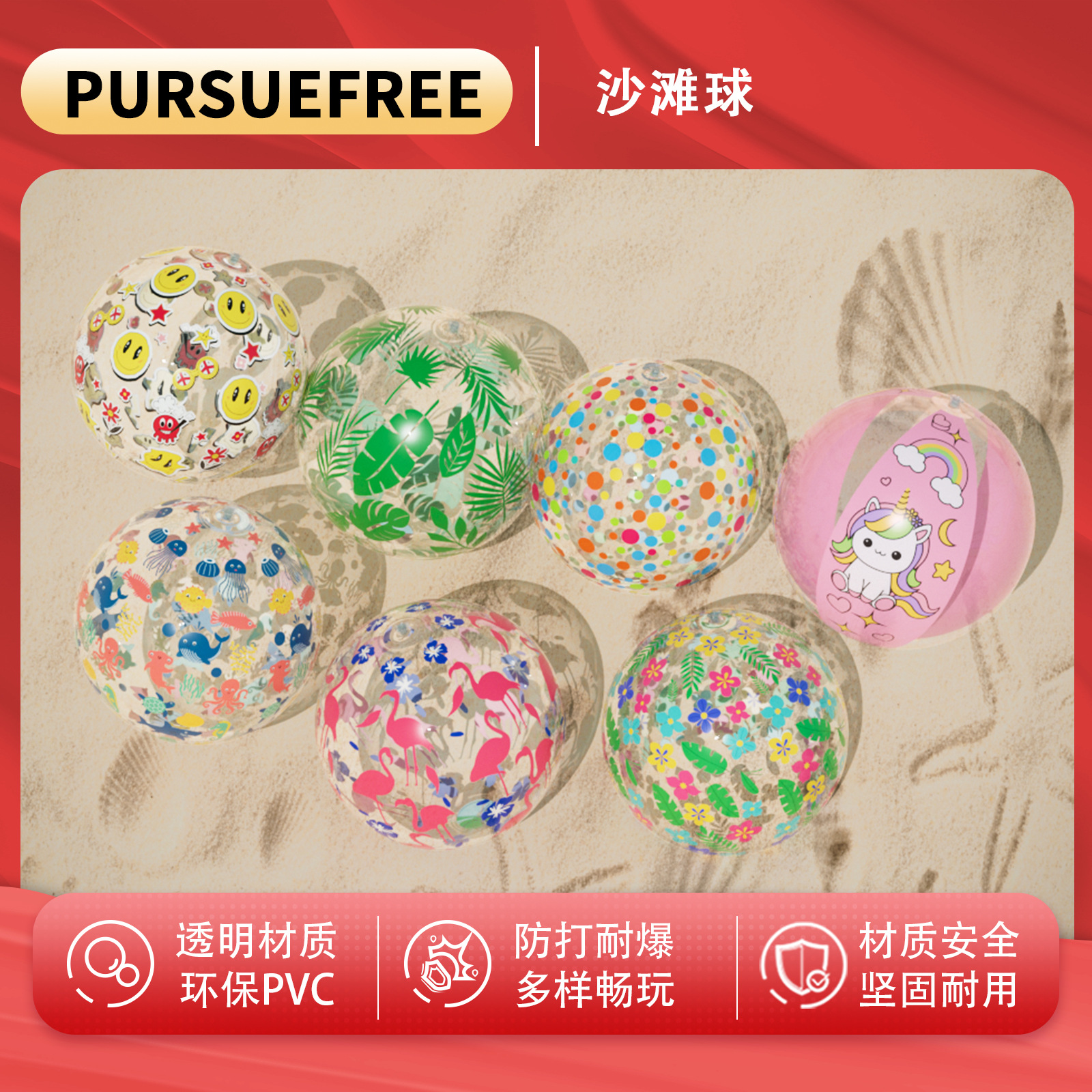 Pursuefree インフレータブルビーチボール PVC 屋内ビーチウォーター子供用インフレータブルビーチボール