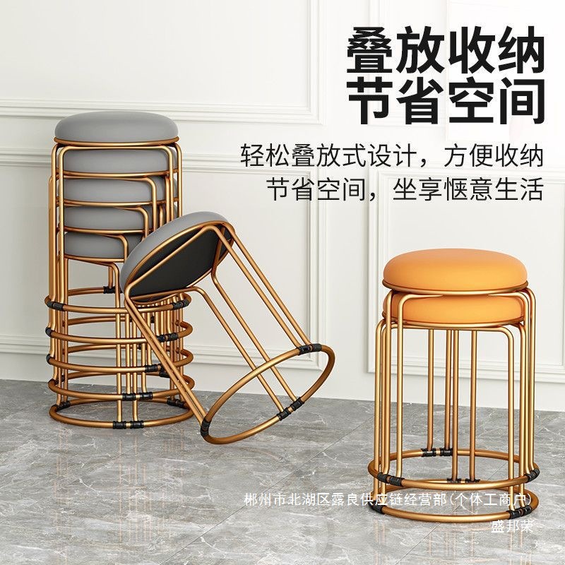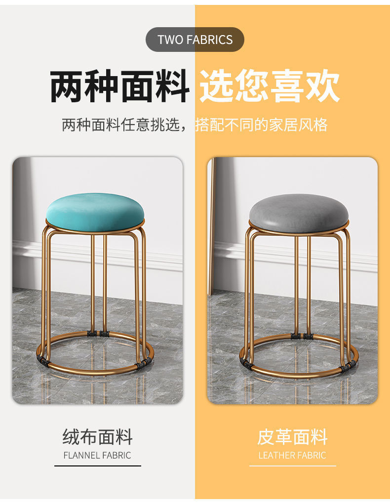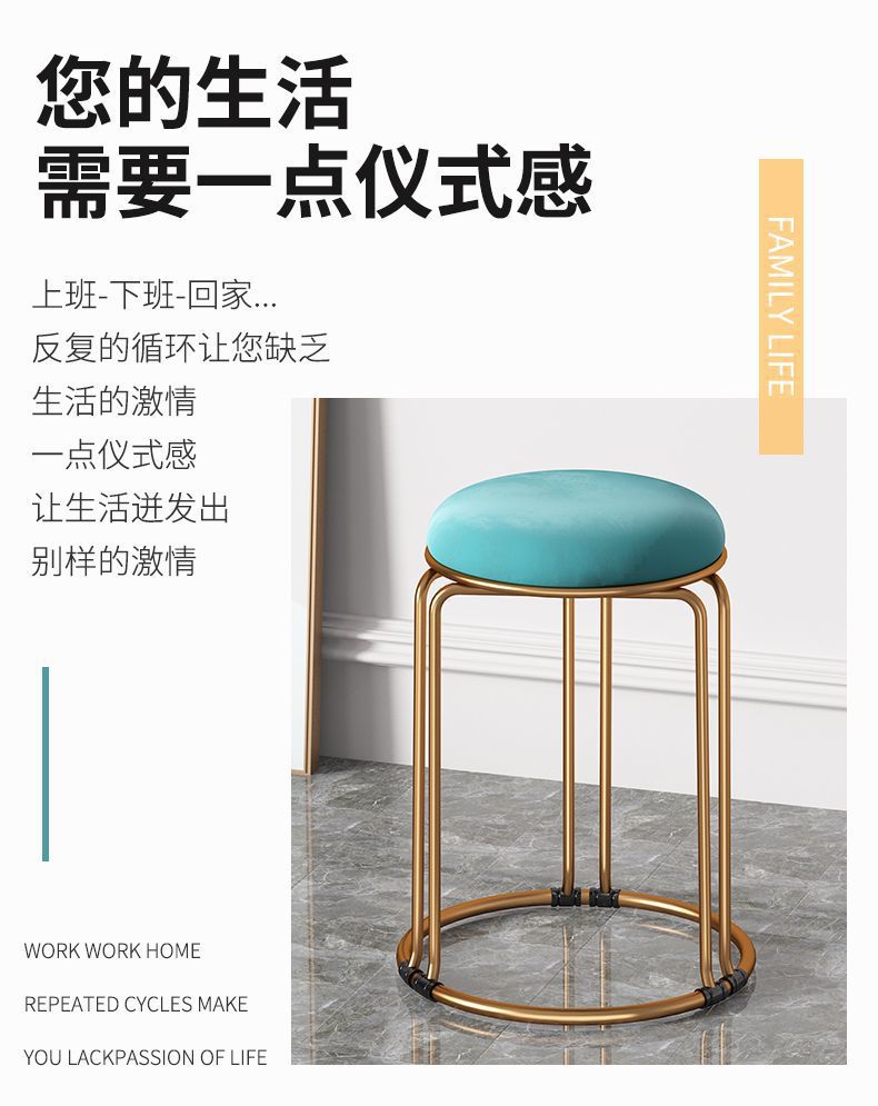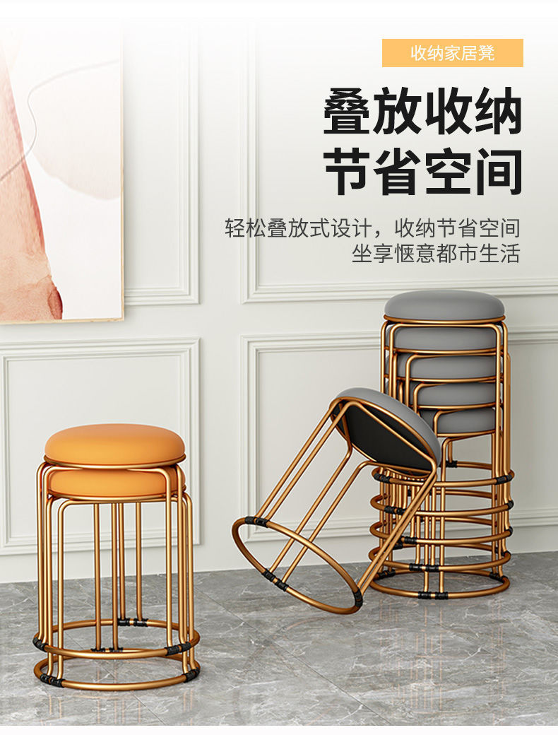 厂家直销轻奢钢筋凳家用圆凳客厅凳子ins可摞叠矮凳网红小板凳北