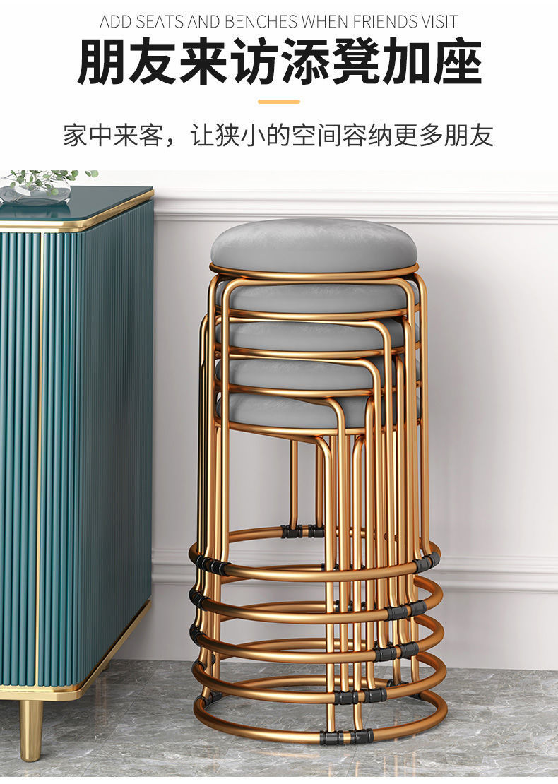 轻奢钢筋凳家用圆凳客厅凳子ins可摞叠矮凳网红小板凳北欧餐桌凳