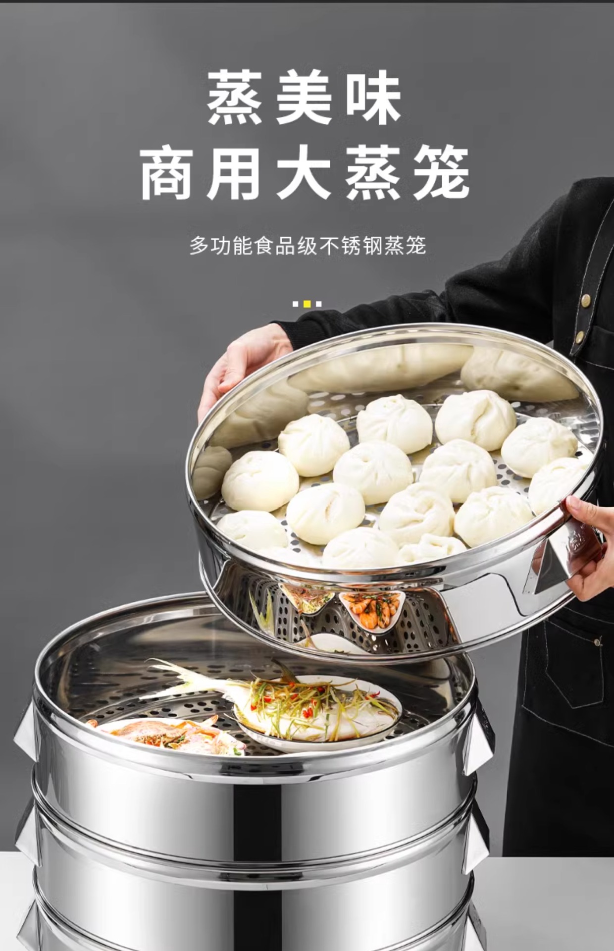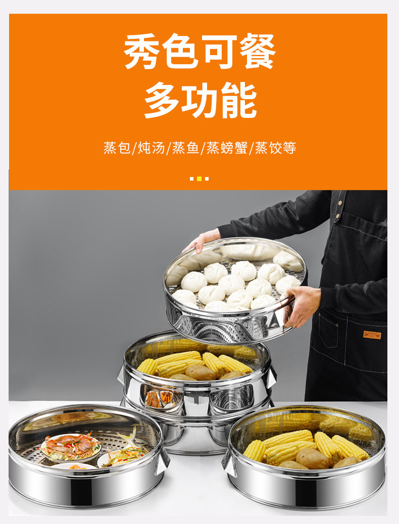 不锈钢蒸笼蒸包子蒸馒头多层笼屉商用大号蒸格酒店食堂不锈钢蒸锅