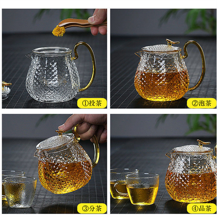 厚いガラスティーポットセットのフィルターティーポット家庭用耐熱ティーポットの耐高温ハンマー紋龍香壺